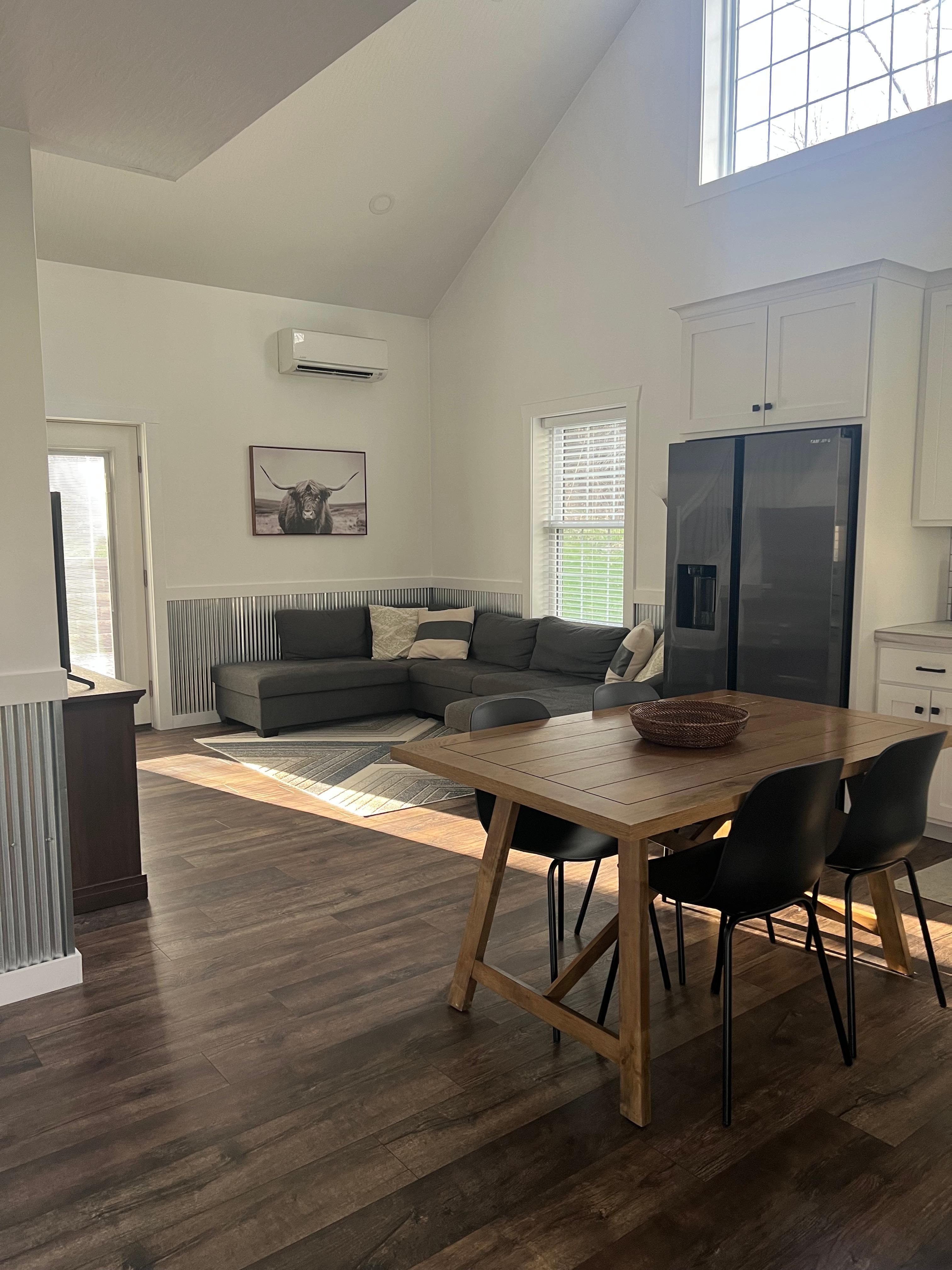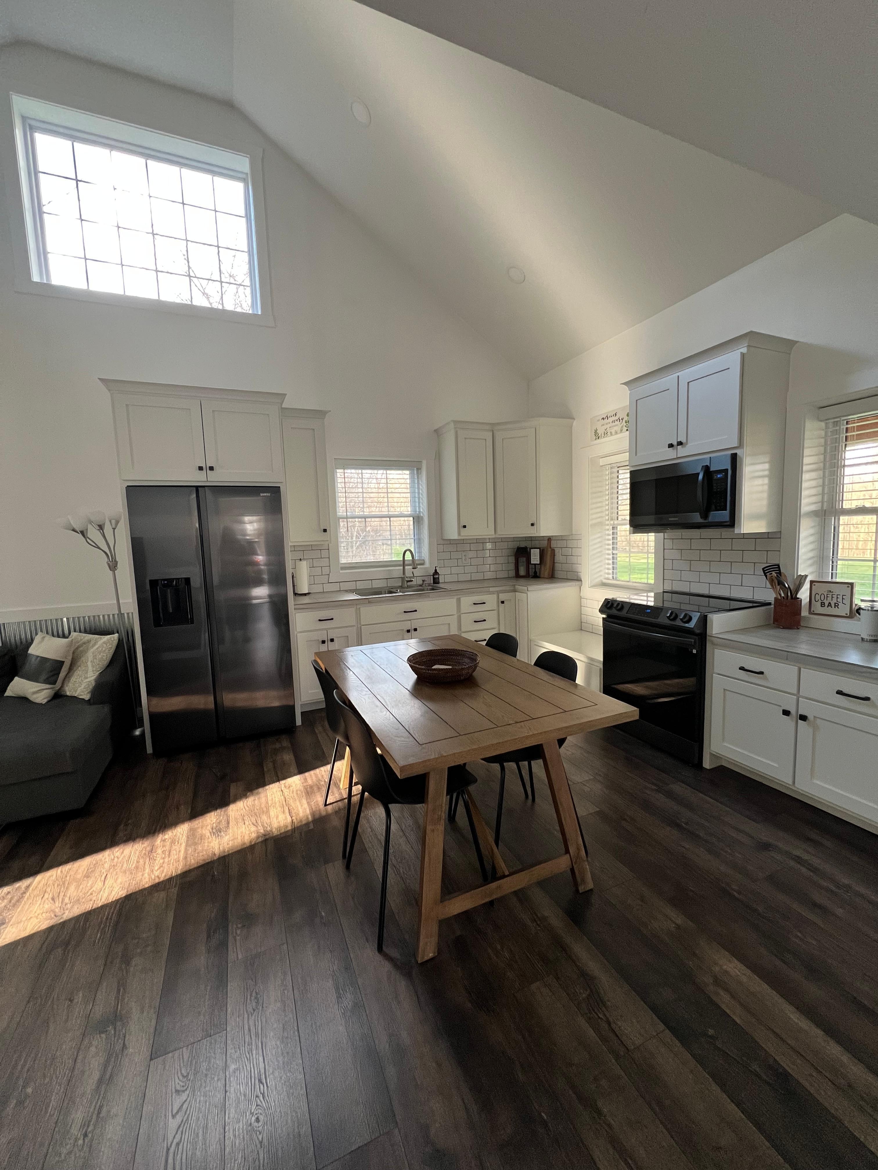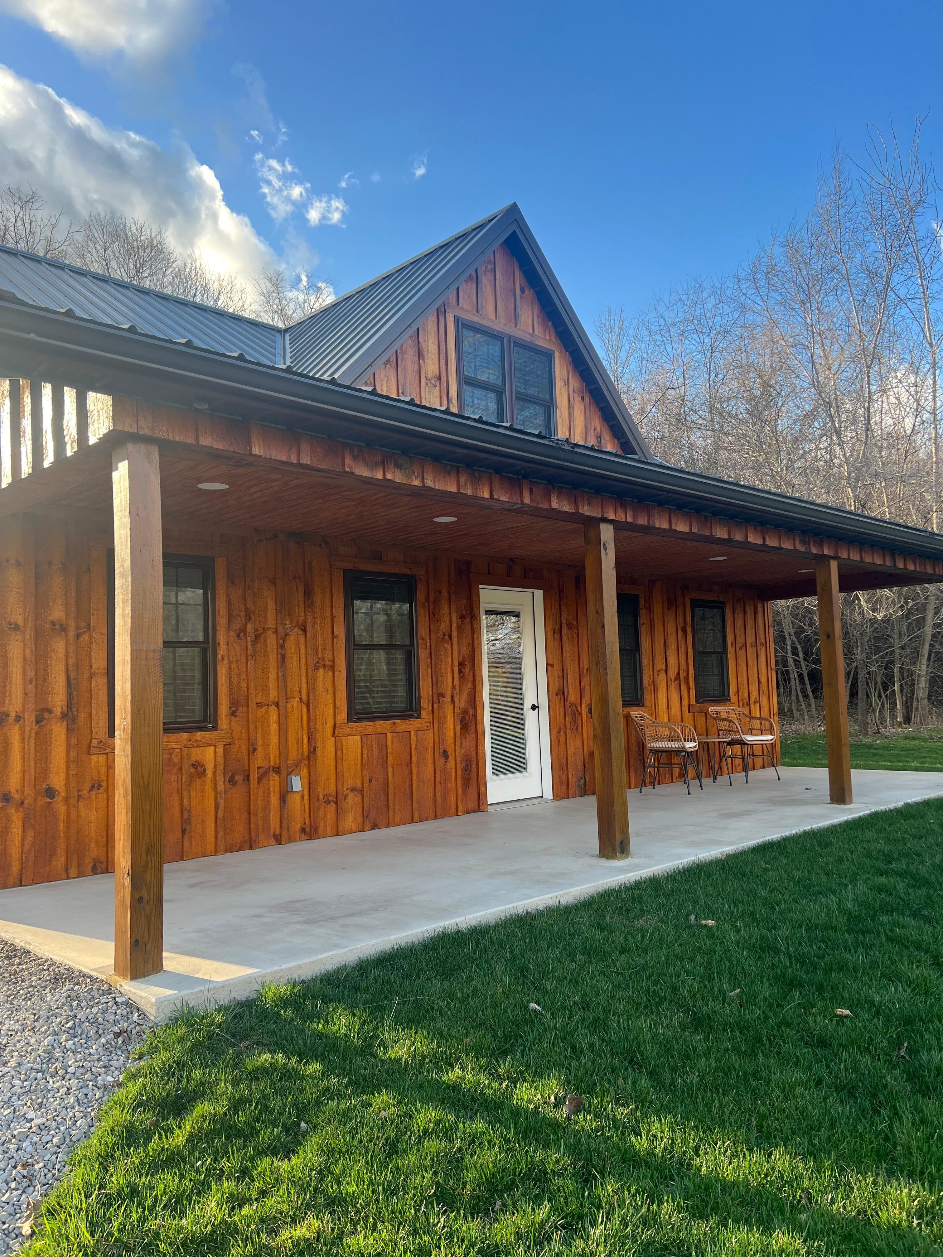 CABIN: 2 - bedrooms with a queen bed in each bedroom. Bedroom 1 is on the main floor, Bedroom 2 is in the loft area, but totally enclosed with a privacy door. A sitting room in the loft area. The bathroom is on the main floor with a tub/shower and a vanity with 2 sinks. A laundry room with a washer, dryer and laundry tub. The living room has a big sectional, an electric fireplace, a smart TV and a DVD player. A kitchen with a refrigerator, ice maker, microwave, oven, coffee bar, and a dining table. TECHNOLOGY: We provide free internet by Spectrum. There is a smart TV and a DVD player. So bring your own subscriptions and your favorite DVDs. ATTRACTIONS: About 1 mile to Cross Mound Park where you can take a short hike to see the Cross Mound. Walk to town to enjoy meals at Crosstown Creamery, open Tuesday-Sunday or Paps, open Friday evening, Saturday evening. Enjoy shopping at Footsteps in the Past across from Crosstown Creamery. Tarlton also has a Dollar General and a gas station with a IGA. Cozy Creek Cabin is within reasonable distance to the Hocking Hills State Park attractions, and surrounded by Historic towns with lots to do. Chillicothe, Lancaster, and Circleville the home of the Pumpkin Show. Come enjoy Gods beautiful creation!