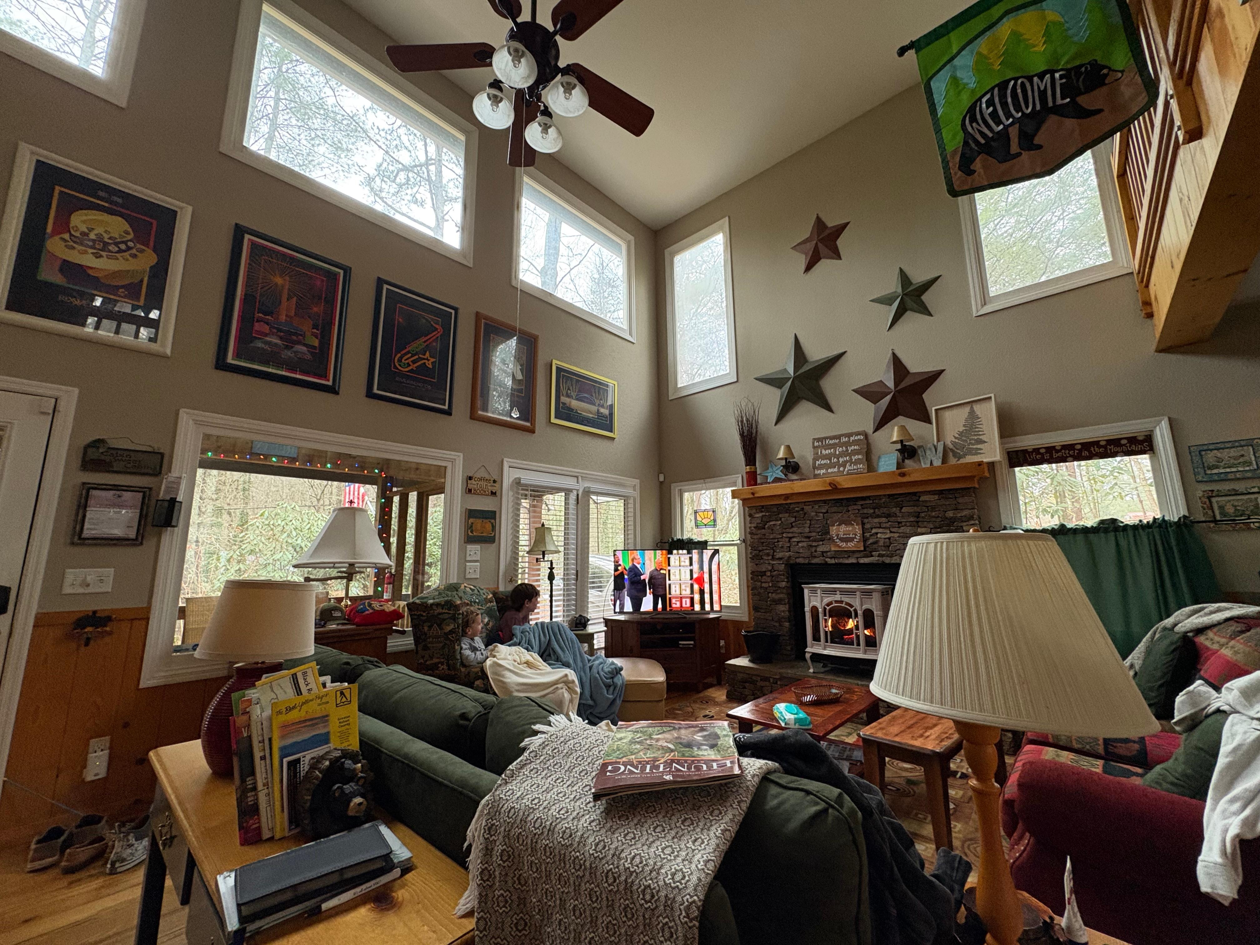 A mountain home with comfy touches at every turn - what could be better? Families and groups will love relaxing at this secluded home that's still close to town. Enjoy lounging on the furnished screened-in porch, or grill with a view! The full kitchen features the full-size appliances and kitchen tools you need to cook up delicious meals together. The loft features two desk workspaces perfect for completing remote work or schooling, in addition to a friendly bedroom space perfect for slumber party fans. Board games are provided for guest fun, and the central air conditioning will ensure that summer guests stay comfortable. When it's time to settle in, just pull the room-darkening shades closed for a peaceful night's rest.