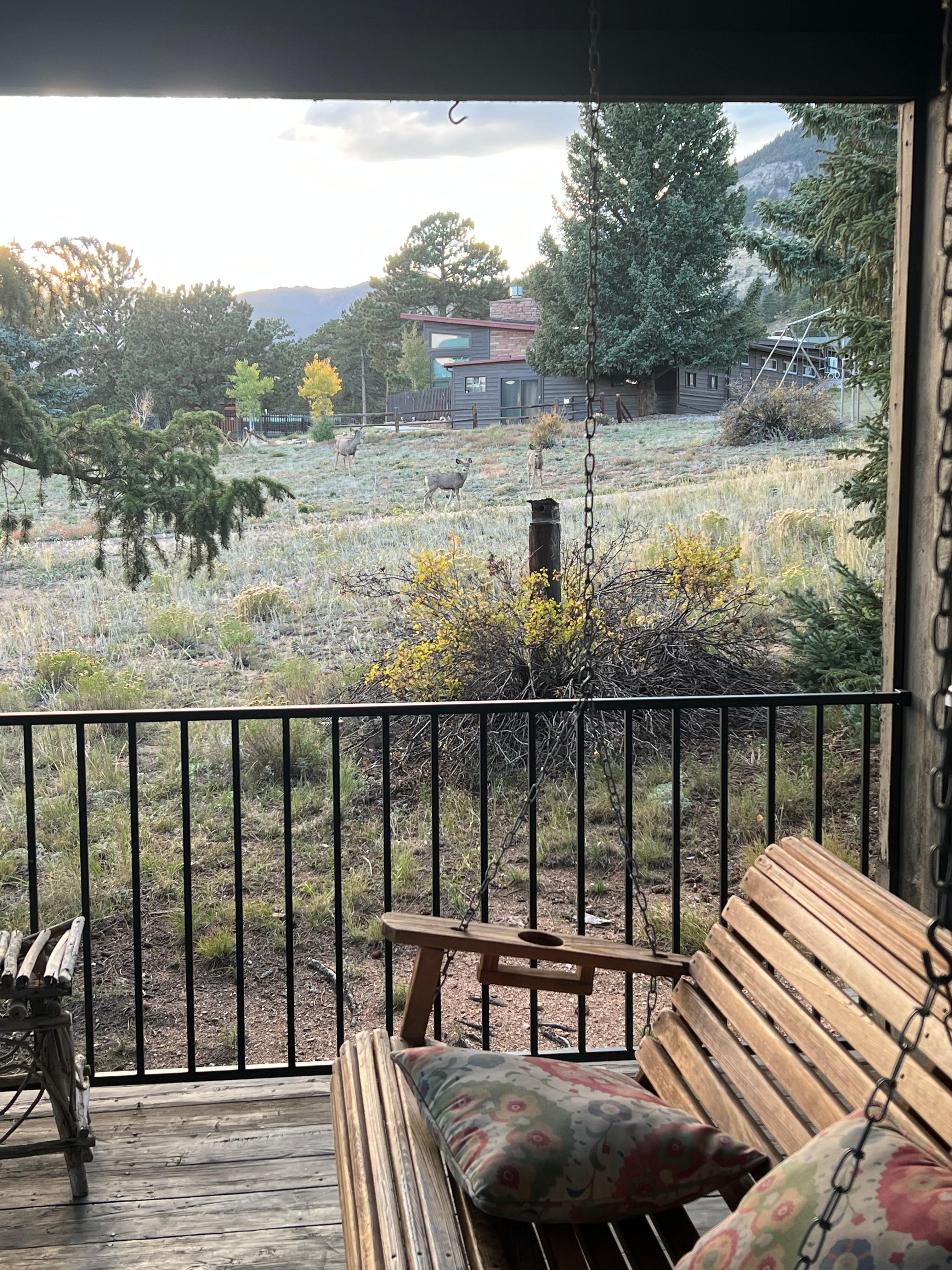 This was our fourth stay at the Joy Cabin so we knew what we were getting. This was our first time in late September so the earlier nights and cooler temps reduced the time spent out on the porch which just might be the best porch in Estes! But we did get to spend more time indoors which was actually pretty fun as well. It's a great place, great location, and I love the historic feel. Well equipped kitchen too.