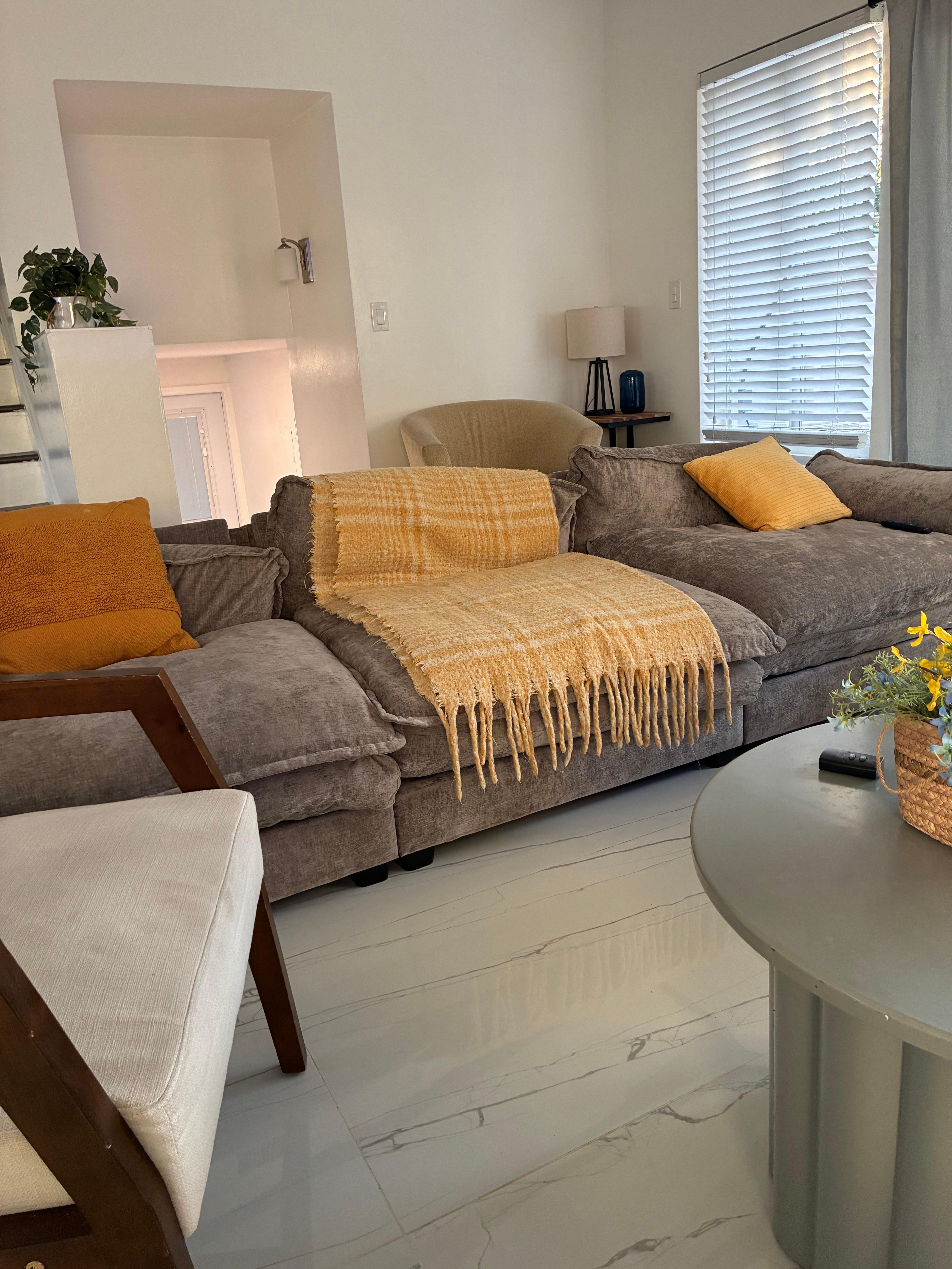 This house was disappointing, and certainly not worth the 5,400 we paid for four nights. When we arrived, the pool was dirty, the outdoor furniture was dirty and in some cases, tattered. The outdoor tv didn’t work, nor were there instructions. Two fans were so corroded that we were afraid to turn them on. Inside, the living area looked nothing like the photos on VRBO. Those photos show a lovely black leather sectional and rug; what we found was a beat up cloth sectional that was totally uncomfortable and no rug. The overhead light in the living room popped on and off randomly, as did the fire alarm/smoke detector, which went off once at 2:22 in the morning. There was a gaping hole in the kitchen where a smoke detector apparently once was. The two side chairs were stained…When we called the property manager after we arrived and saw the condition of the house, the call went to voicemail, which was full, so we couldn’t leave a message. After emailing the owner, Allen, about the pool and lack of bath towels, he sent someone out the next day.