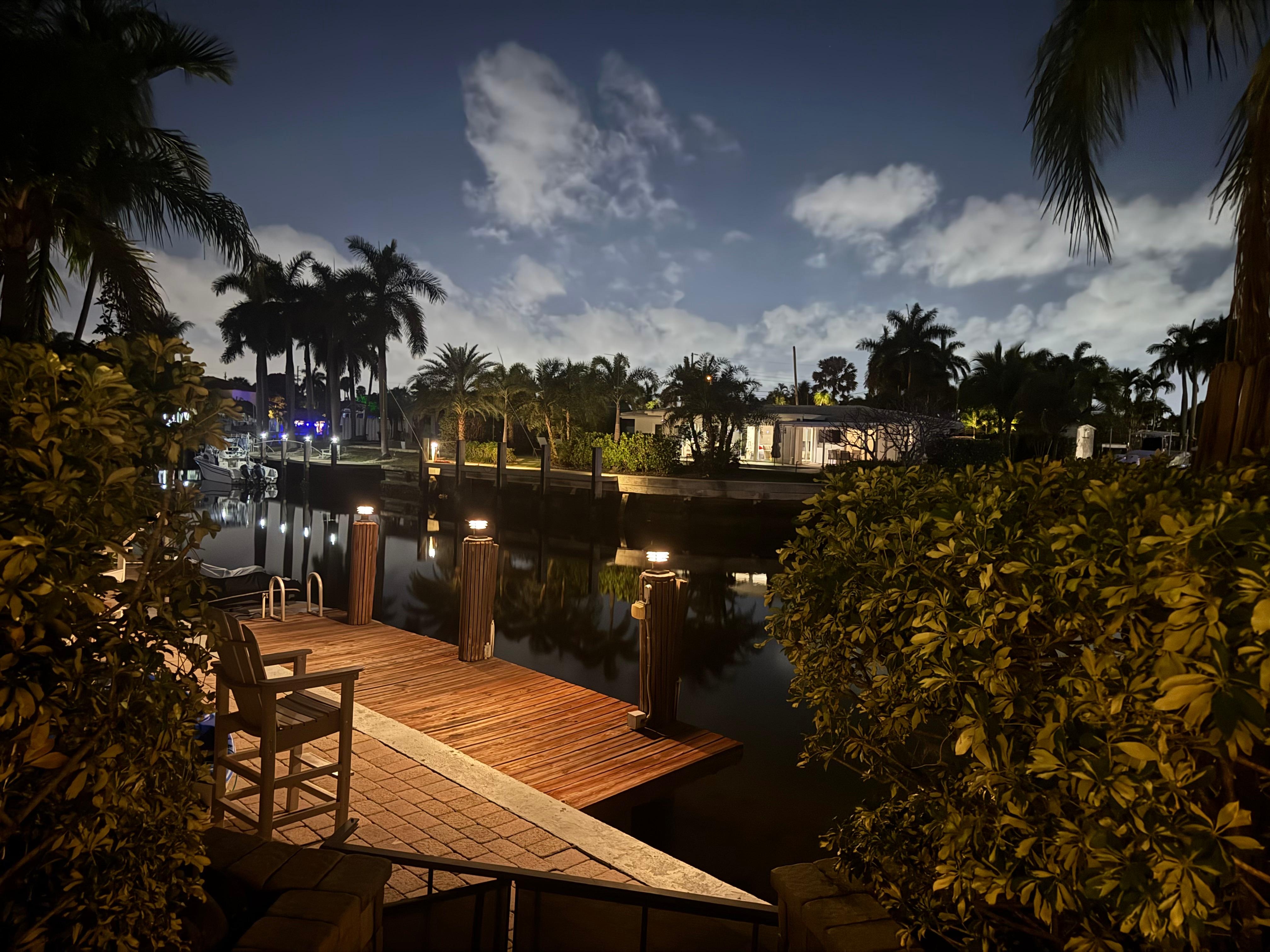 Botanical Waterfront Paradise offers a heated pool, lush tropical landscaping, and a glowing pergola with an outdoor kitchen and bar. Enjoy a sunset-facing dock where a rental boat can be delivered. The home features vaulted ceilings, a spacious kitchen, 4 king bedrooms with hotel linens, and 3 full baths (3 ensuites). Kayaks, bikes, and a fully fenced yard make this the perfect private waterfront escape.