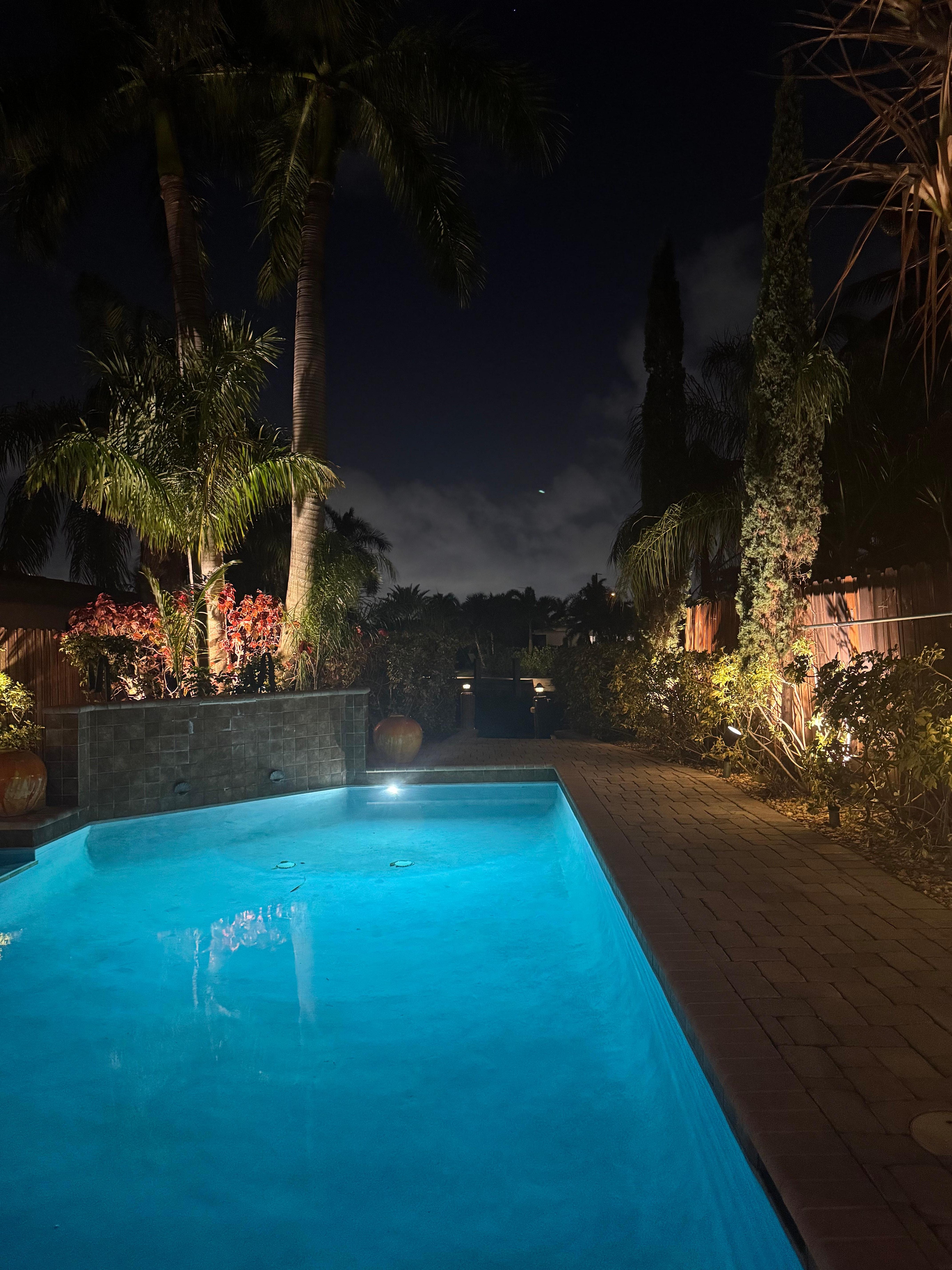 Step onto the property and immediately feel transported. Lush botanical landscaping surrounds a modern heated rectangular pool, a spectacular Buddha waterfall, and a beautifully lit pergola with a full outdoor kitchen, bar, and built-in sound system. In the evenings, warm ambient lighting transforms the backyard into a magical night-time oasis.