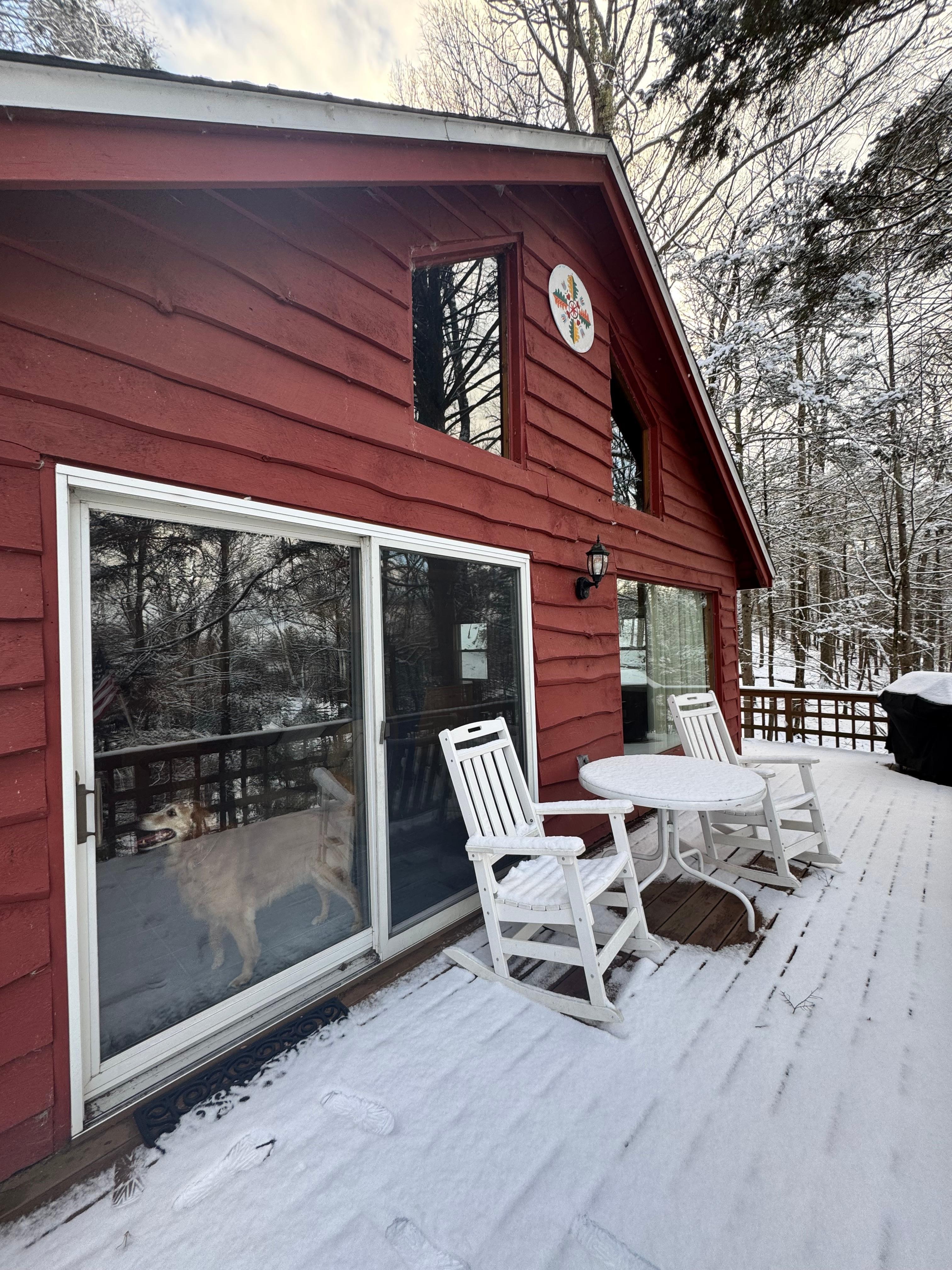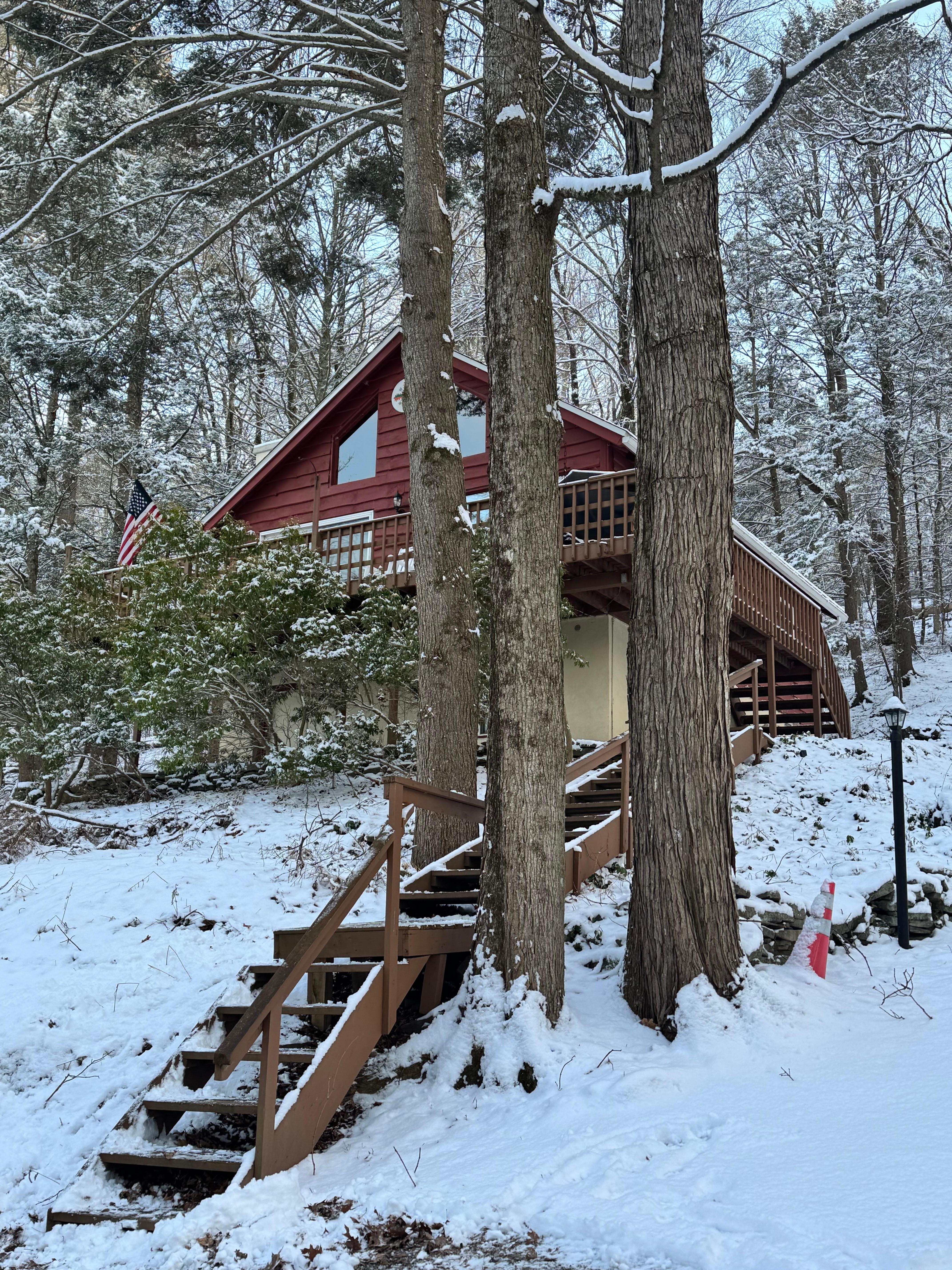 Located at Lake Wallenpaupack, this tranquil house offers 2 bedrooms each with a double bed, and an upstairs loft with a double bed and two single beds, along with 2 bathrooms featuring showers. Guests can enjoy amenities like a hair dryer, AC, heating, a washing machine, and WiFi. Experience the magic of the lake at our serene house. All wheel drive recommended in the snowy months.
