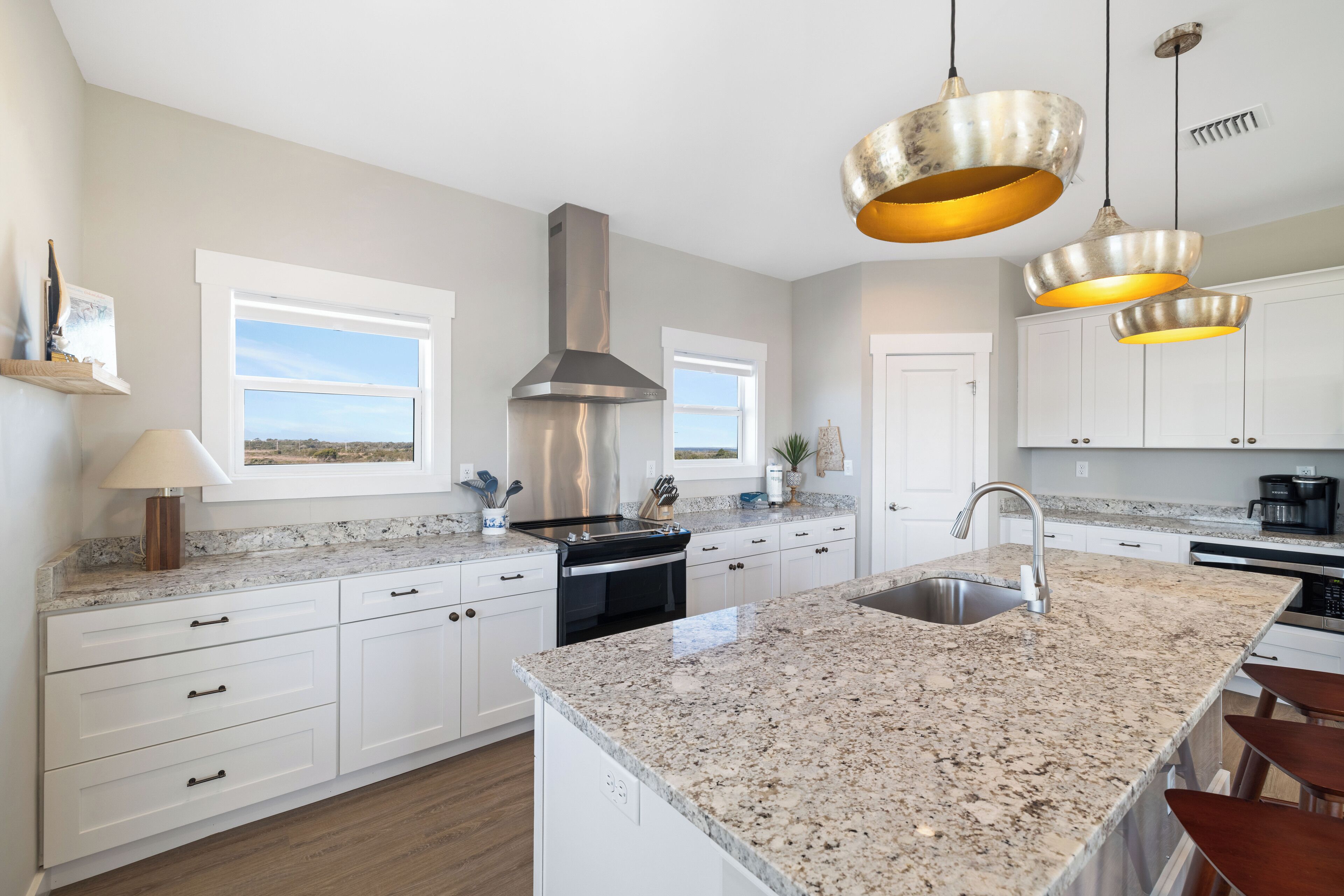 Prepare delicious meals in the fully equipped kitchen, complete with granite countertops, stainless steel appliances, and all the cookware and utensils you need. Enjoy meals together at the dining table or take advantage of the balcony dining area for an experience with unbeatable views.