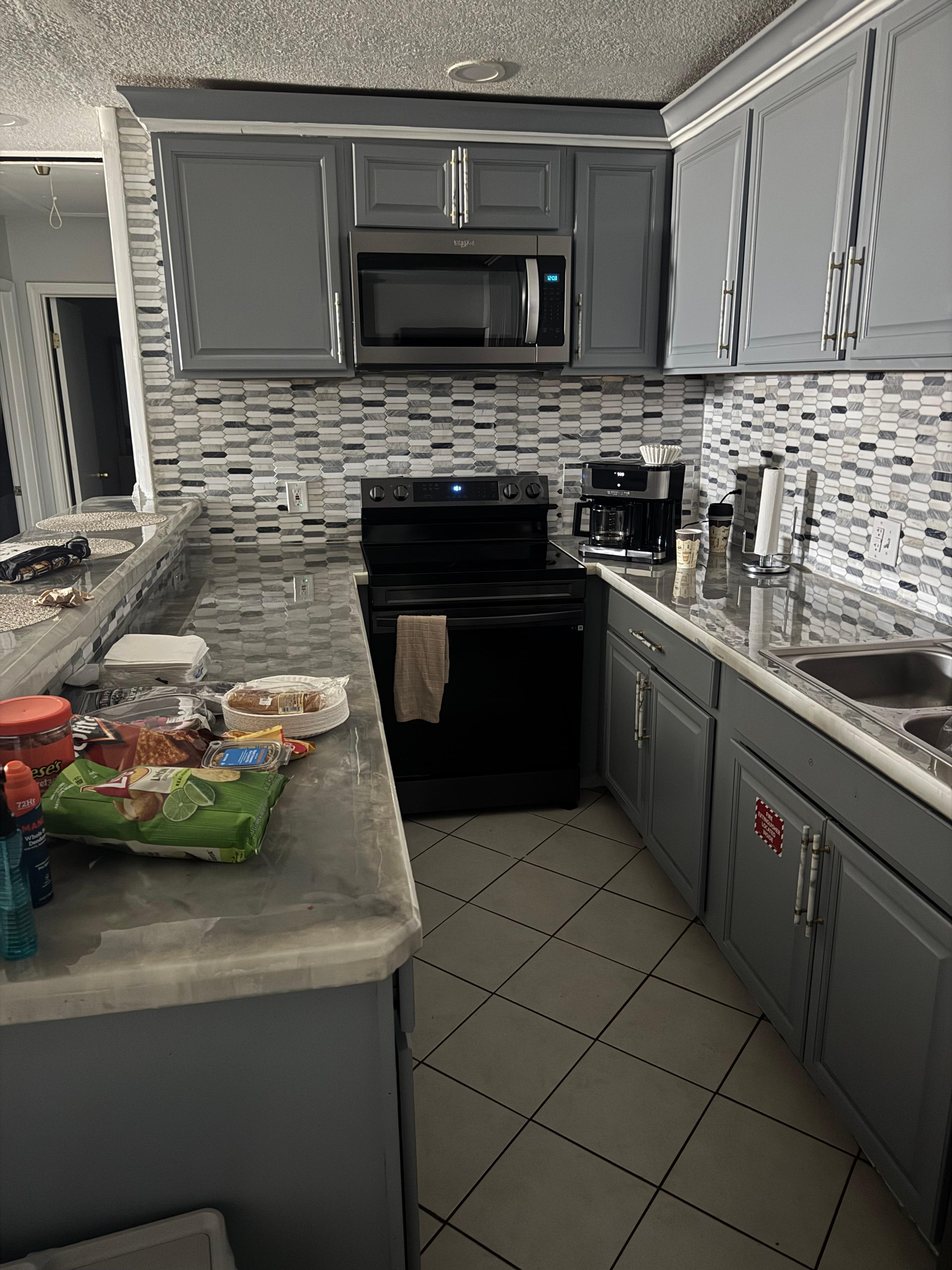 Fridge, microwave, oven, stovetop