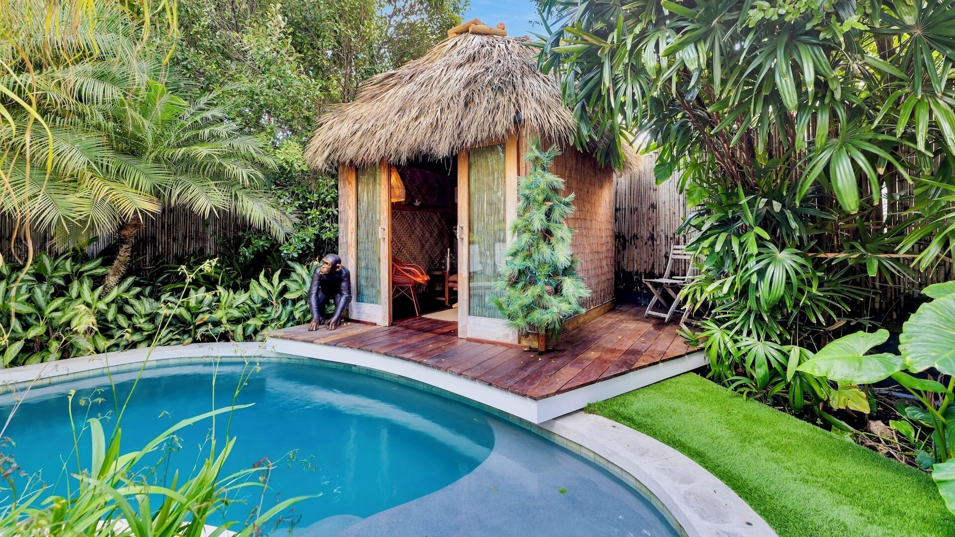 - **Outdoor Oasis:** Enjoy the expansive exterior deck, perfect for entertaining or simply unwinding. Relax in your private hammock, surrounded by lush greenery.