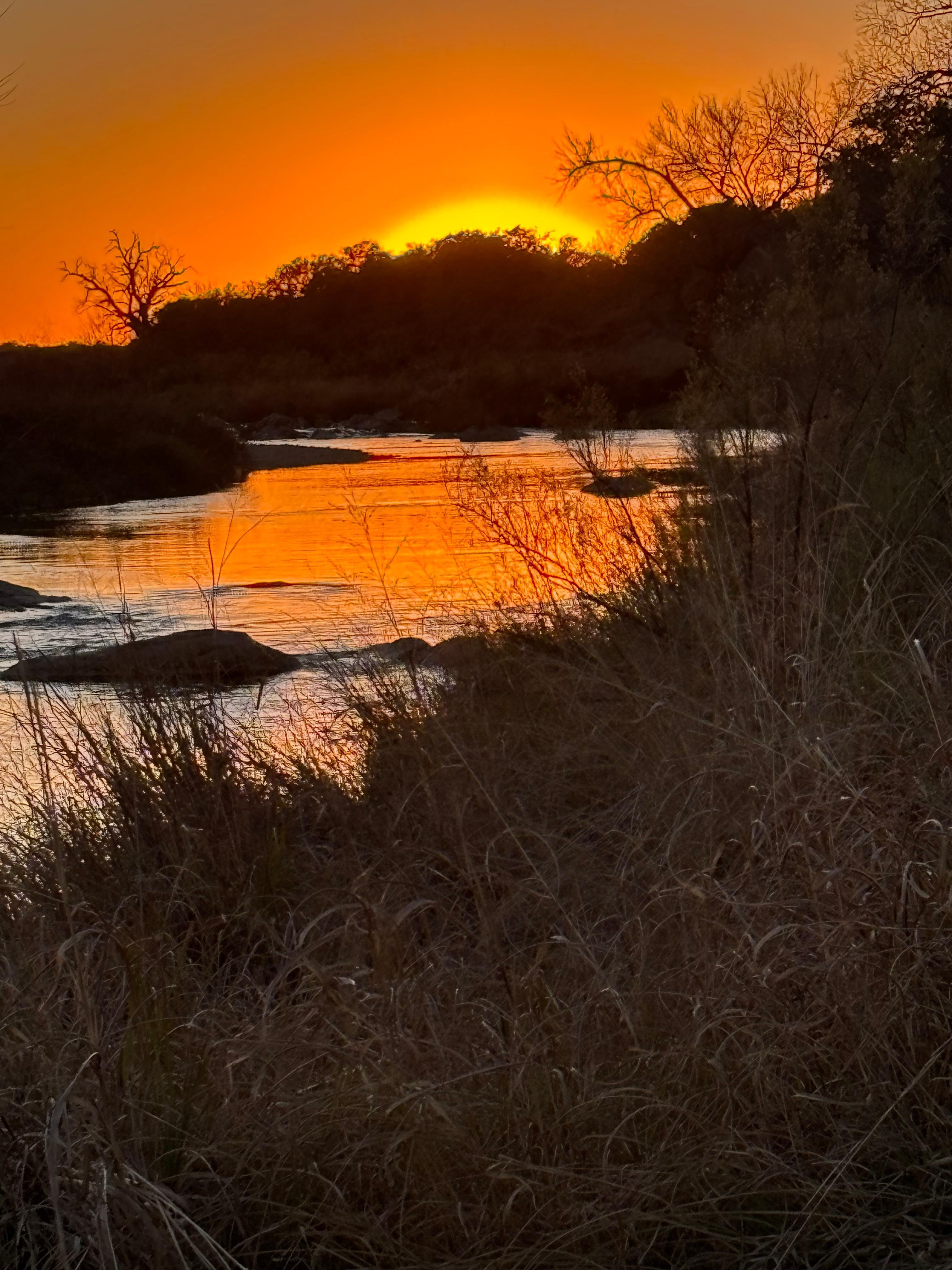 We’re located on the banks of the clear and cool Llano river with over one hundred feet of private access. The Llano River, at our location, is over 100 yards wide and offers endless opportunities to roam and explore, either by kayak (we offer two adult kayaks and three child kayaks) or by foot. At the edge of our property is a small but fast-flowing fork of the river that is knee-deep to thigh-deep depending upon the time of year. It’s roughly thirty feet wide. This fork is an awesome spot to plant our river chairs and sit back and relax or watch your little-people play in the water and throw the rocks.