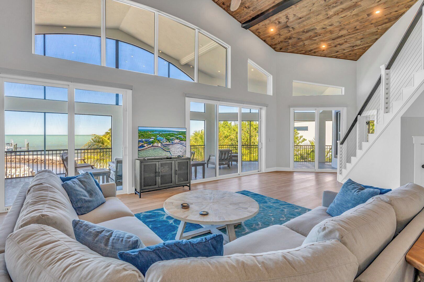 SANCTUARY FOUND... Wide open water views will be found on this 3 acre gated vacation estate. The property includes a 5 bedroom main house, along with a 1 bedroom 1 bath Bungalow and a 3 bedroom 2 bathroom Bungalow. This VRBO listing is just for the 5 bedroom main house on the property. The main house which includes an elevator from the ground to the main floor will sleep 12 to 14 people. The whole property has been renovated over a three year term. Starting in Sept. 2021 until the Fall of 2024 everything has be renovated. New heated/chilled pool and spa have been added, 100 ft dock with 30 and 50 amp service, gourmet kitchen tons of outdoor space, every item is new with no expense being spared during the renovation.