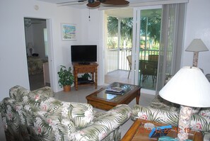 This spacious tropical condo is right across the street from the beach. The condo sleeps five with a king size bed, queen size bed, twin bed, sleeper couch as well as two full bathrooms. The unit is loaded with flat screen TV's in each room, fast WiFi, a patio and dishwasher.