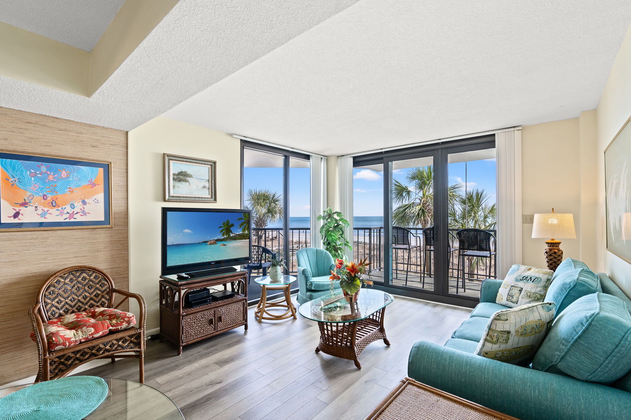 Nauti aamukahvilta katsellessasi auringonnousua rentouttavilla valtameren äärellä 17. kerroksen parvekkeelta Pohjois-Hampton -tornissa Kingston Plantationissa.