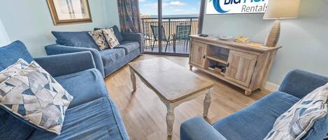 Our condo is comfortably and completely furnished with many of the luxuries of home! Each stay includes towels, linens and a complimentary starter set of toilet paper, shampoo, and conditioner, however, we encourage guests to bring additional supplies. The unit is perfect for a couple or small family beach retreat.