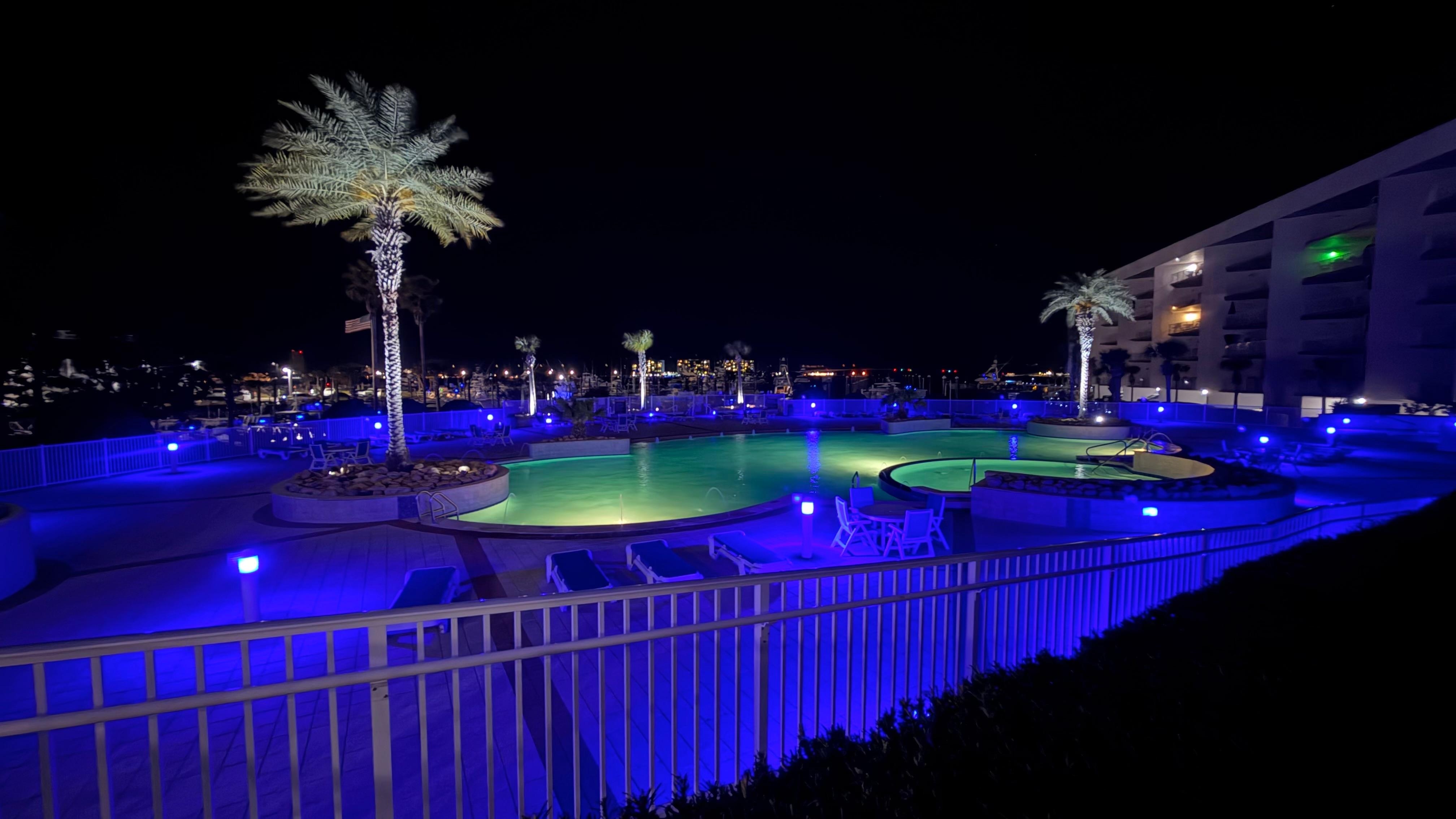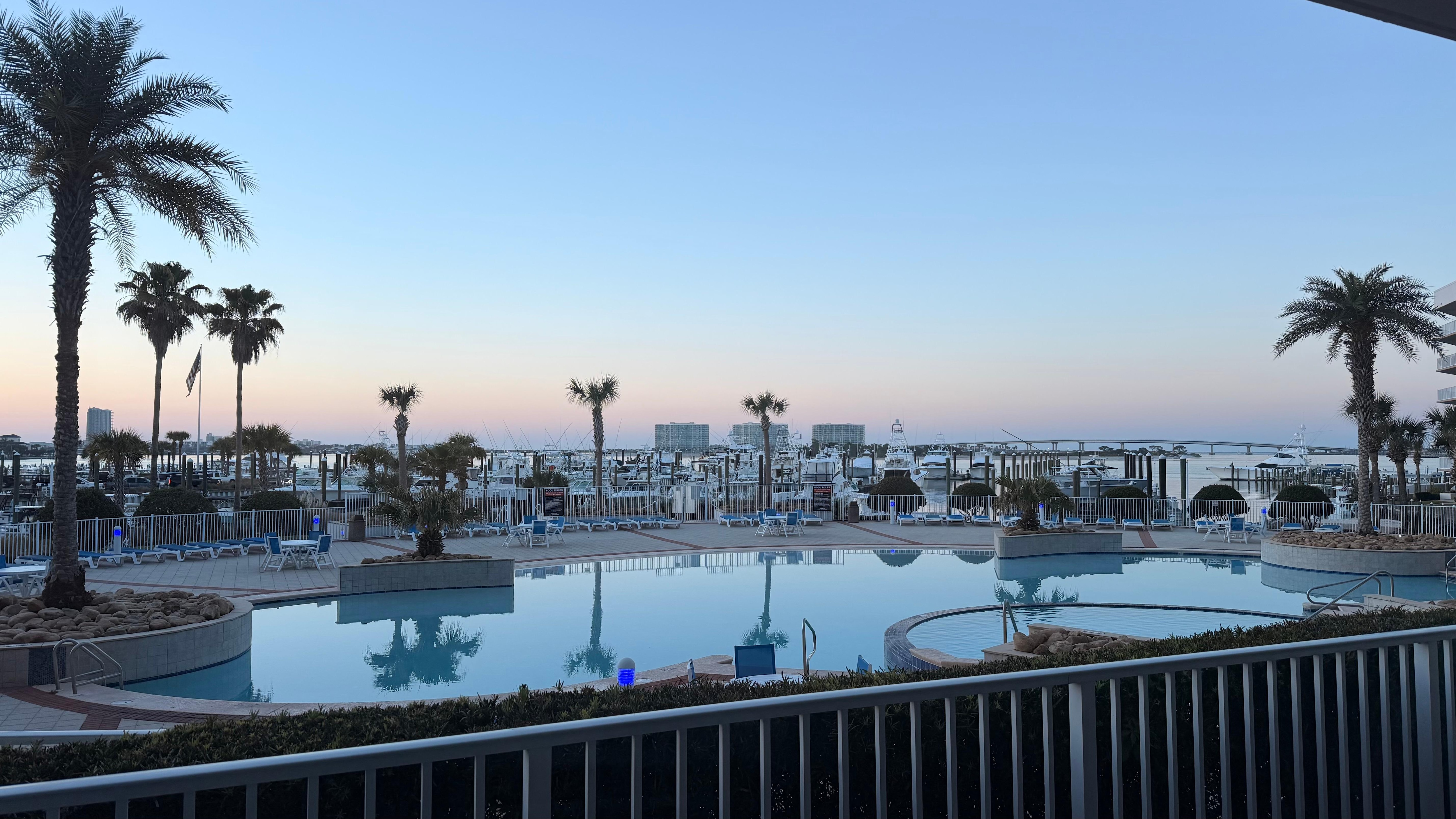 The interior of this condo is inviting and spacious. It features three roomy bedrooms. The master bedroom has a king-sized bed, a flat-screen TV, an attached bathroom with a walk-in shower and a large tub, and a balcony with views of the pool and the bay. The second bedroom has a queen-sized bed, an attached bathroom, and a flat-screen TV. The third bedroom features two twin beds, a flat-screen TV, and a private attached bath. The open and comfortable living area boasts ample seating around a gas log fireplace. The dining area offers seating for the entire family and provides a beautiful view of the pool and the harbor, which you can also enjoy from your private first-floor balcony. The kitchen is fully equipped with plenty of dishes and cookware, as well as a spacious walk-in pantry. A full-sized laundry room inside the unit adds to your convenience, and free Wi-Fi is available during your stay.