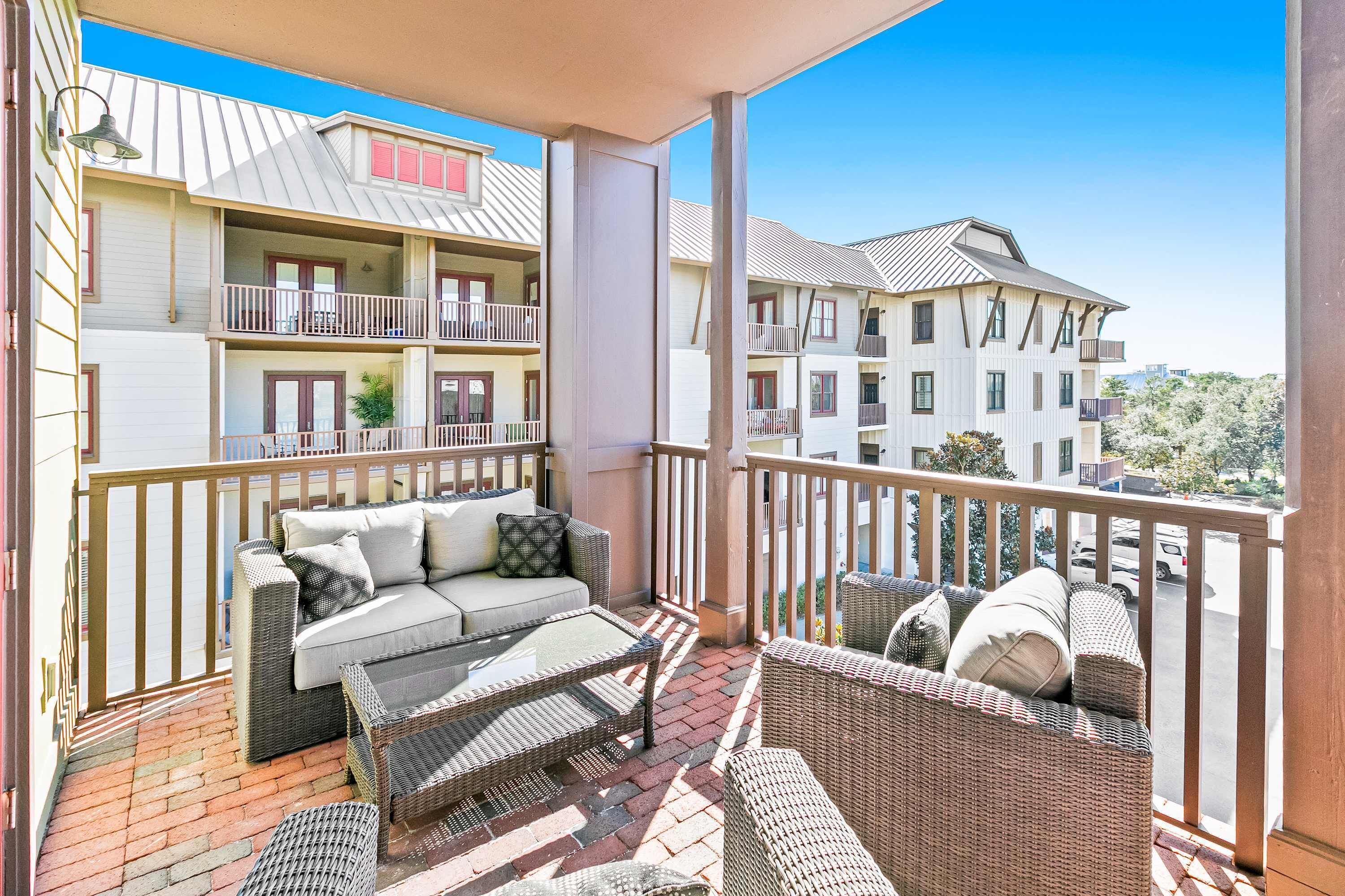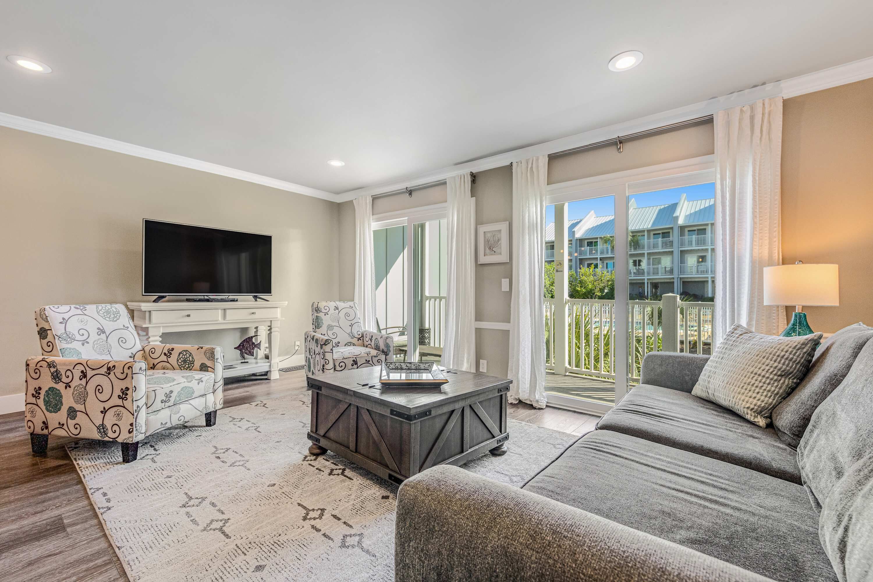 Sandy Shell is the perfect spot to relax. Sit back in an Adirondack chair on the patio or meander through the community on the flat's two complimentary adult bikes. Enjoy family movie night on the spacious living room sectional after a long day at the beach and pools.