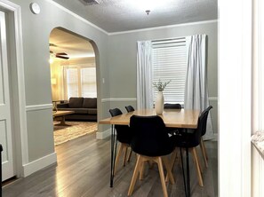 Our home is tucked away on a quiet residential street in Petal. When entering the home, you'll see a beautifully decorated and inviting living room designed to provide you and your family with the perfect place to relax together. The kitchen is fully stocked with all of your cooking essentials, and the dining room offers plenty of seating for meals and also acts as a dedicated workspace if needed. All 3 bedrooms are set up with your comfort in mind with luxurious mattresses and linens and Smart TVs mounted in each bedroom. The bathroom has also been beautifully updated. There is an on-site washing machine and dryer located next to the kitchen which leads out to a private patio overlooking the large, fully fenced-in backyard.