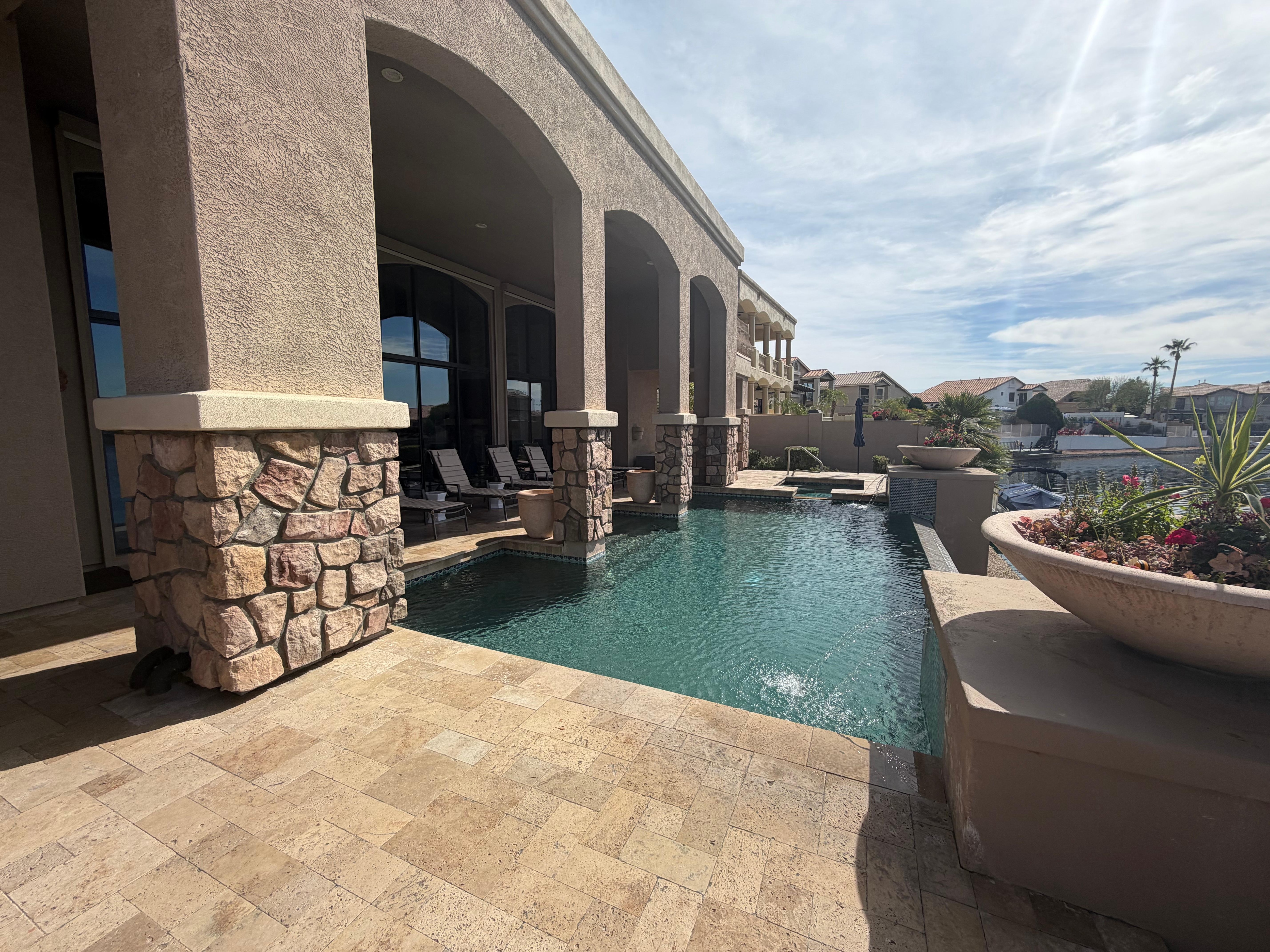 It was a beautiful house with lovely space with lots of room for everyone. We enjoyed the kitchen & pool area the most. The pontoon boat was hit with the kids. The boat we took out two of the five days we stayed and charged it accordingly. It was slow and fun and I’ve never used an electric boat before. The pool and spa were the places we spent the most time in. So everyone enjoyed having their own space bedroom&bathrooms well upstairs shared with bedrooms there. The view from home is beautiful, hiking around the house was great and the area was very convenient and accessible to all the places we needed to go. The manager was very helpful&communicated well whenever we needed anything or had questions about the house. We went over the new year holiday week for a celebration of life. It was great to have our own home base and space from family and friends and select guests (we cleared before our stay with owners and manager) came to visit. The home is in a great neighborhood and the dining table was well used with meals&game nights. It was nice for the teen to have his own space and the preteens to have their own bathrooms with makeup and girl stuff and the younger kid had his own space and parents had their own space which was great. The comfy couches and living room and tv were used for movies and bowl games. The outside table has a fire pit in it which was fun for the kids and they loved the balconies. We enjoyed our stay here and would do it again next time we come to AZ.