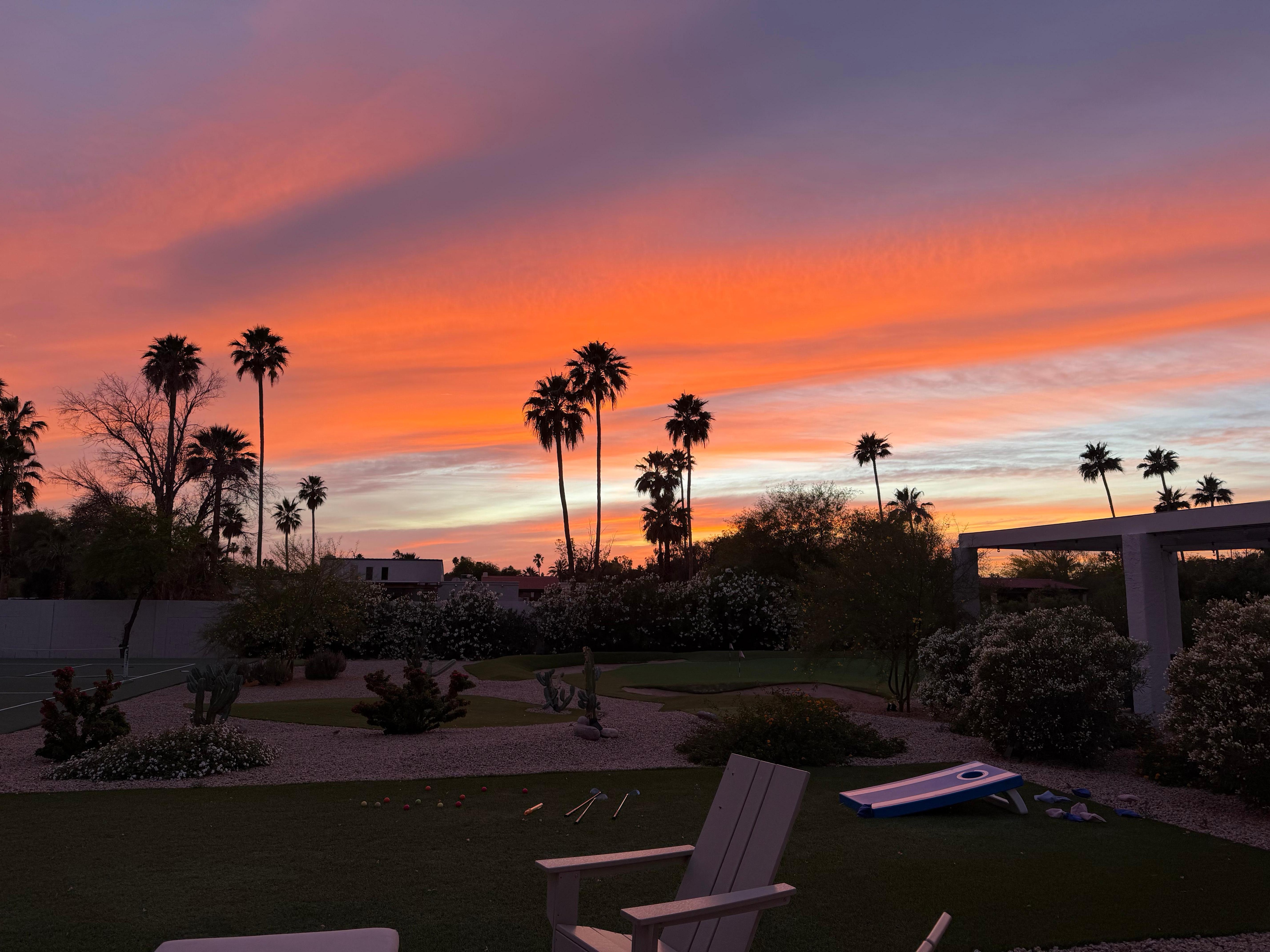 This private resort-style, one-acre oasis offers a nine-hole golf course with tee boxes located around the yard to test your short-game skills as you hit into a 30 putting green protected by 3 large sand traps. You can also play pickleball on your own private court. How fun is that! Take a dip in the heated pool (see note below) surrounded by lush landscaping. And there s more - two separate covered seating/dining areas, pool table, bocce ball on the grass. Play a game of basketball on the side yard. Grill up your favorites on the BBQ. All of this and only 20 minutes from the airport. You ll have a blast