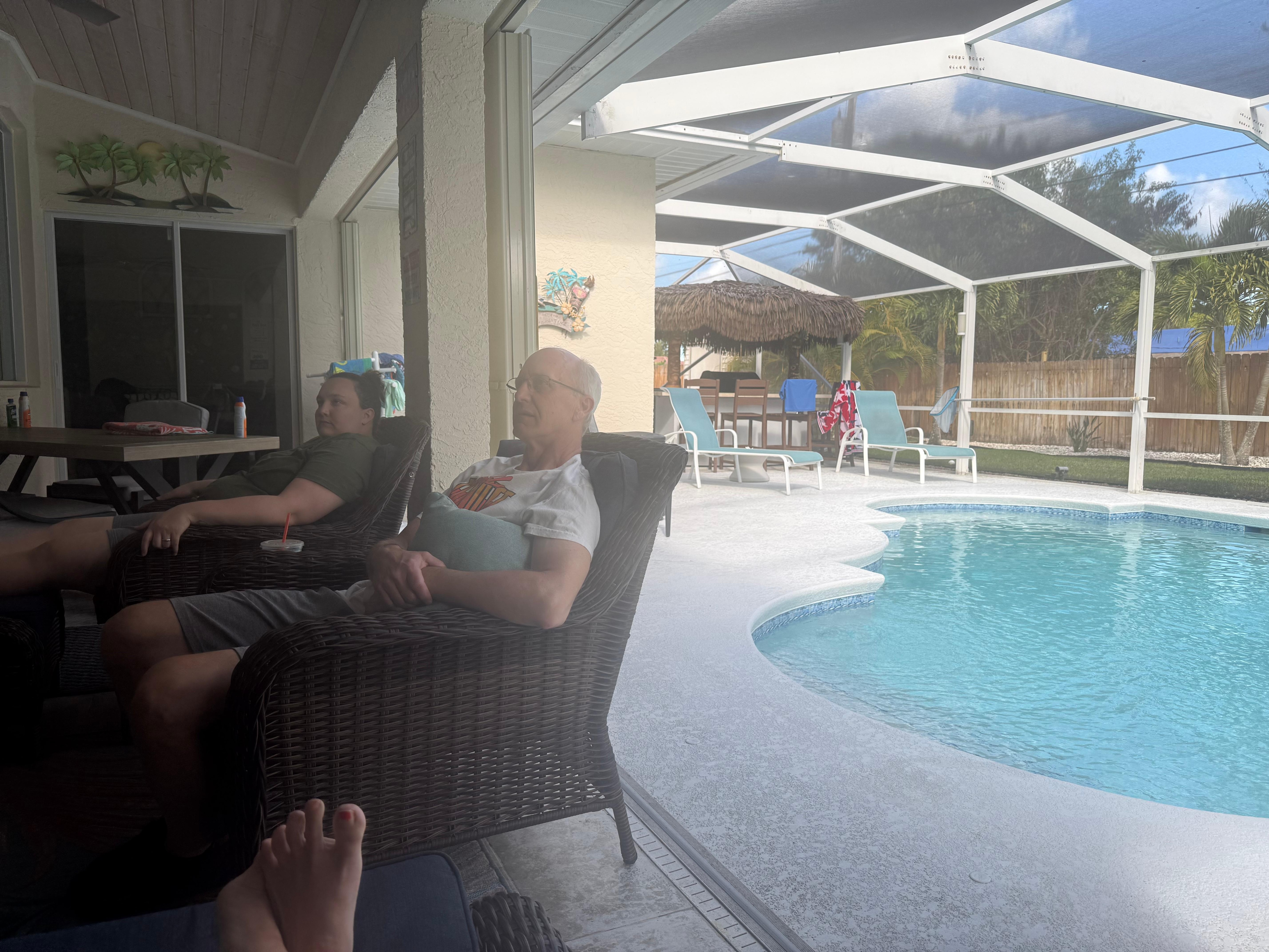 3 Bedroom, 2 bath fully furnished with everything you need for a comfortable stay. Outdoor Heated pool (no additional fees), Covered Lanai with many seating options to relax, enjoy a meal or just soak up the sun. Dining for 8, Game room (Skeeball, Air Hockey, Arcade Basketball & Cocktail game console). Quiet neighborhood bordering Jensen Beach. Minutes from multiple beaches. 10 minutes to Treasure Coast Mall, Dining and the Savannas Preserve State Park-Hawks Bluff Trail.