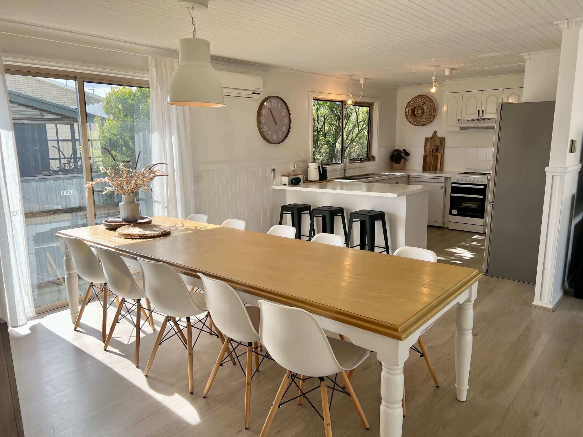 Shore Beats work is a light, bright, family-friendly holiday house located just two streets from the stunning Long Beach. It is a short walk to the beach and only a few minutes drive into Robe township, where there are shops, cafes, two hotels and a supermarket. There is even a cinema, ice cream shop and brewery in town.