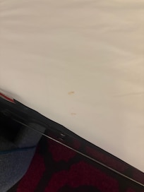 I don’t even know where to begin. Checking in, the person at the desk was probably the most incompetent person that could’ve been there. He gave me absolutely no details about anything at all. He just took my ID, didn’t speak the entire transaction, and handed me a room key. The room itself was disgusting. Stains everywhere, dirty sheets, and a broken dishwasher. Also, the bathroom door isn’t actually a door because it’s just a piece of wood that slides “closed” and someone outside can easily see you in there. The ironing board was also falling apart, so I’m not too sure why they even bothered putting it in the “closet”.I would have loved to complain about it to the staff at the front desk, but miss girl working was too worried about her phone call with her homegirl and making sure her hair looked good. This hotel was extremely ghetto, and it was disgustingly uncomfortable. There are homeless people everywhere outside and it’s extremely dirty. Not to mention, the picture of the pool is literally a lie. I honestly thought that’s where they kept their dumpster but it was a tiny little pool that was also, you guessed it, dirty! I think it’s hilarious that people are being charged 300 bucks to stay here. If anything, I should be compensated for dealing with the homeless people in the parking lot, and the filth of the room barely being clean. Please don’t stay here, Hilton has really gone downhill.