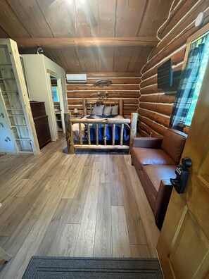 Adorable cabin located at the Greyhouse Inn property which is 7 acres in all. There are other accommodations on the property. This duplex cabin is equipped with has a Queen bed. It also has a bathroom with shower and a kitchenette. There is plenty of room on the property to enjoy the outdoors and firepits are available for fireside fun. BBQ available upon request.