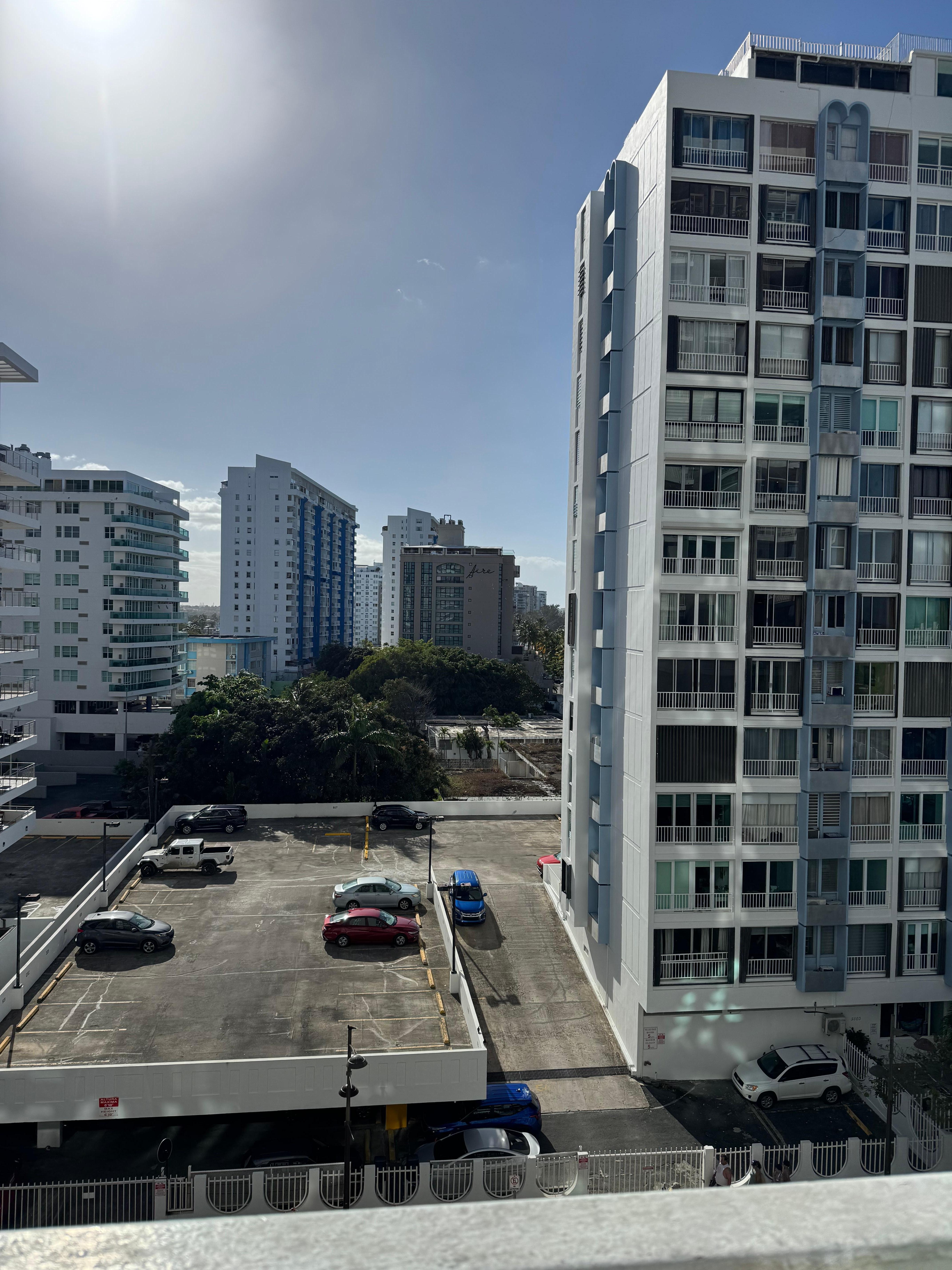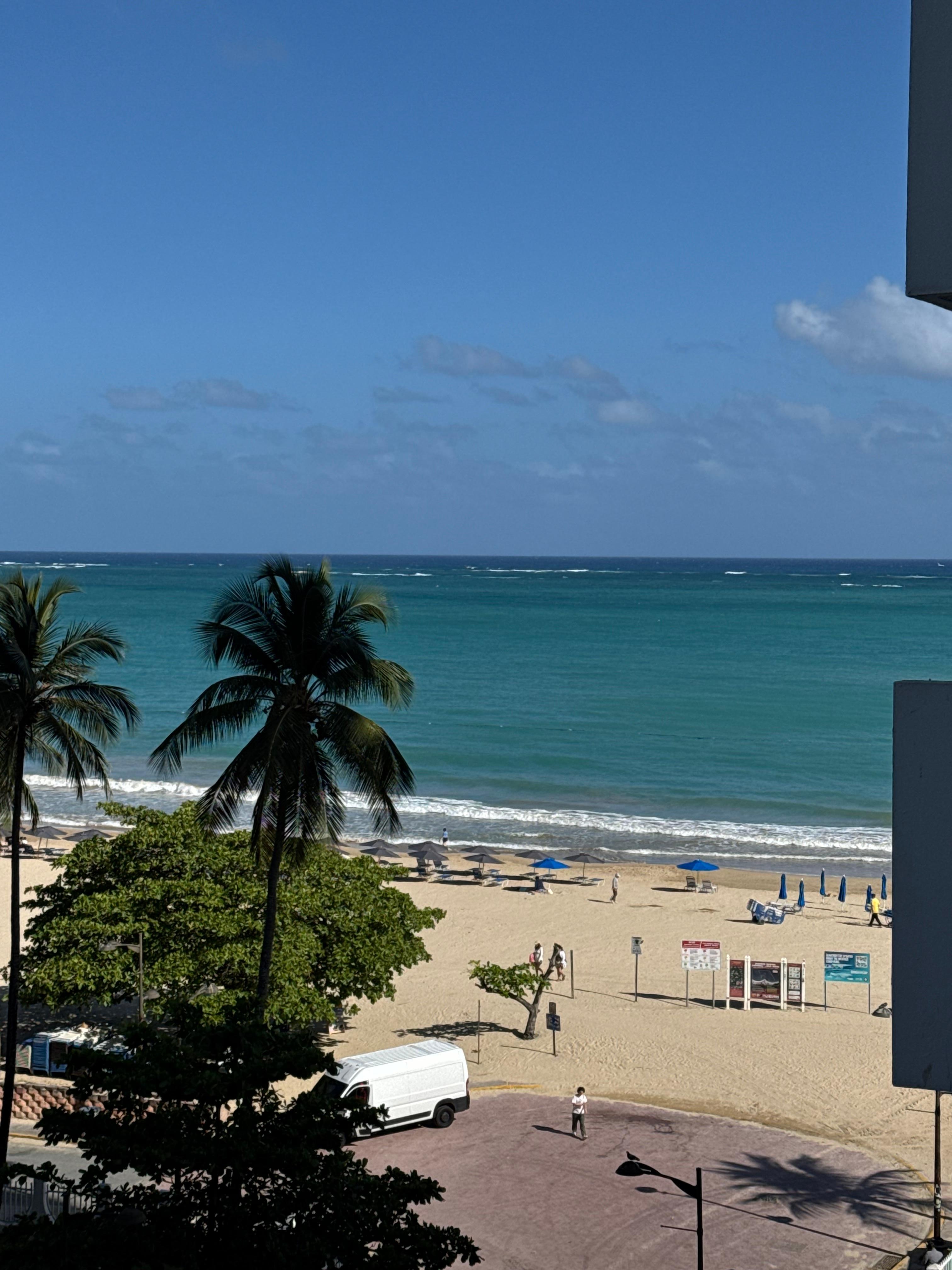 Unit is just the right size for a couple - Unit was clean and had all the necessary utensils for light cooking etc., The Condo is older than some it's neighboring condos but, as mentioned unit itself was clean and upgraded inside. Condo is located and nestled amongst hotels and within walking distance to plenty of authentic PR restaurants, grocery store, fast-food etc.,You can't beat the price for the location as condo sits directly on the beach, with access to the pool. We had a wonderful time and communication with our host, Saribel was on point, had no issues with check-in / check-out instructions. **I do want to mention that, the online description does indicate there is a deck/patio space but, please note it is only a standing-room 'landing' - not a true deck/patio for a table / chairs. Otherwise, all was great!!