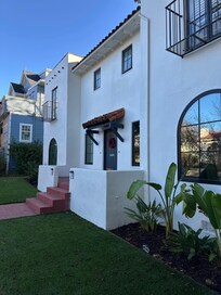 Sweet duplex in a lovely neighborhood! Neighbors walking their dogs … surrounded by trees on a quiet residential street. We were visiting local family and the home and location were a perfect spot. Our family of three was comfortable in each room - great bedding - and my teen appreciated his balcony and desk setup. The kitchen is fully equipped and the bathroom amenities are well stocked! You will enjoy the private entrance and easy parking, as well as the easy walk to shops and restaurants. Grocery is also very close by. Note that there is a steep, winding staircase to the upstairs bedrooms and one bathroom. Great communication leading up to and during our visit - instructions are very clear. We enjoyed our stay and would definitely return!