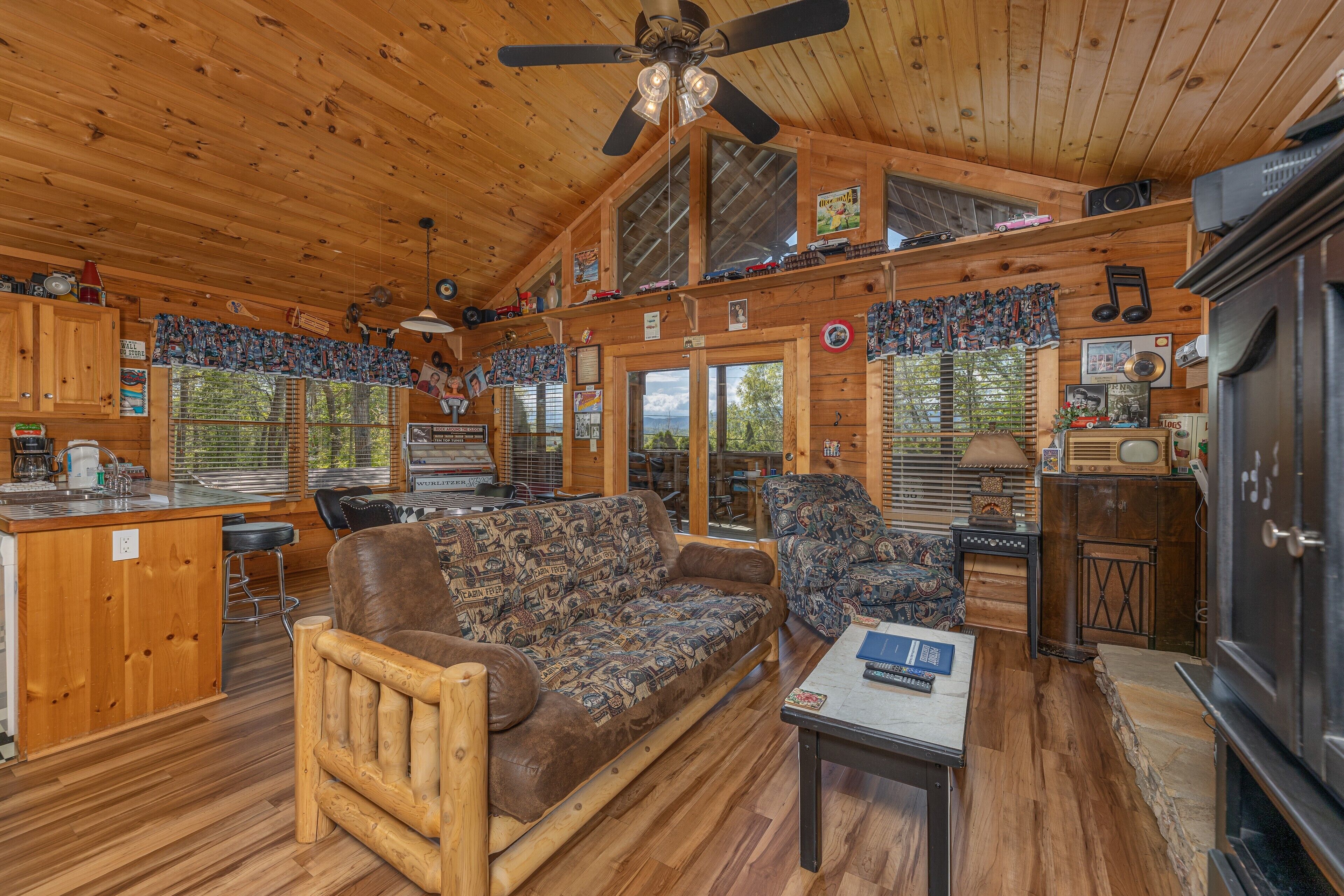 Get ready to relax and enjoy the incredible views in this recently renovated 2-story 2-bedroom/bathroom cabin, ideal for adventurers and nature lovers alike. From the moment you set foot in Mountain Sights N' City Lights, you will experience a spacious floor plan of approximately 1,100 square feet sleeping up to 6 guests. The rustic decor highlights the attention to detail of the cabin and gives you the full Smoky Mountain experience.
