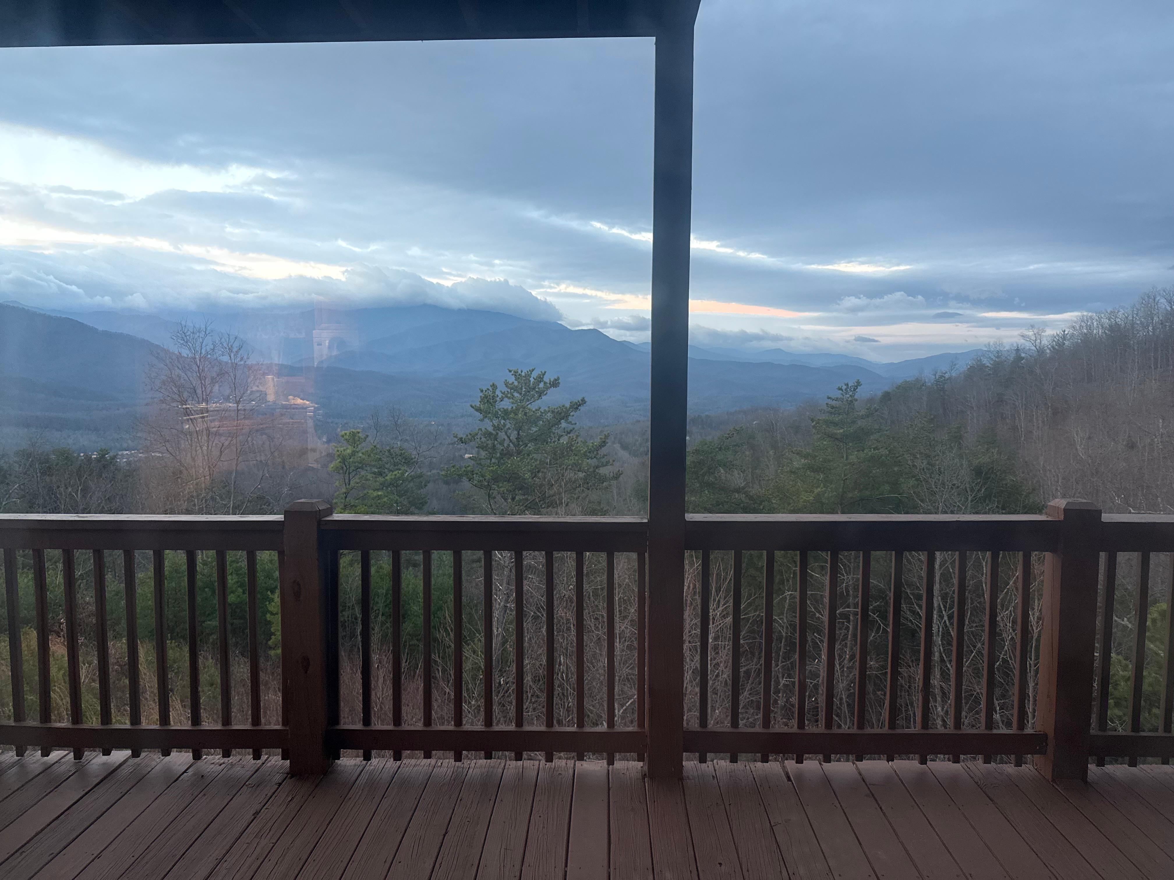 View from the deck overlooking mountains