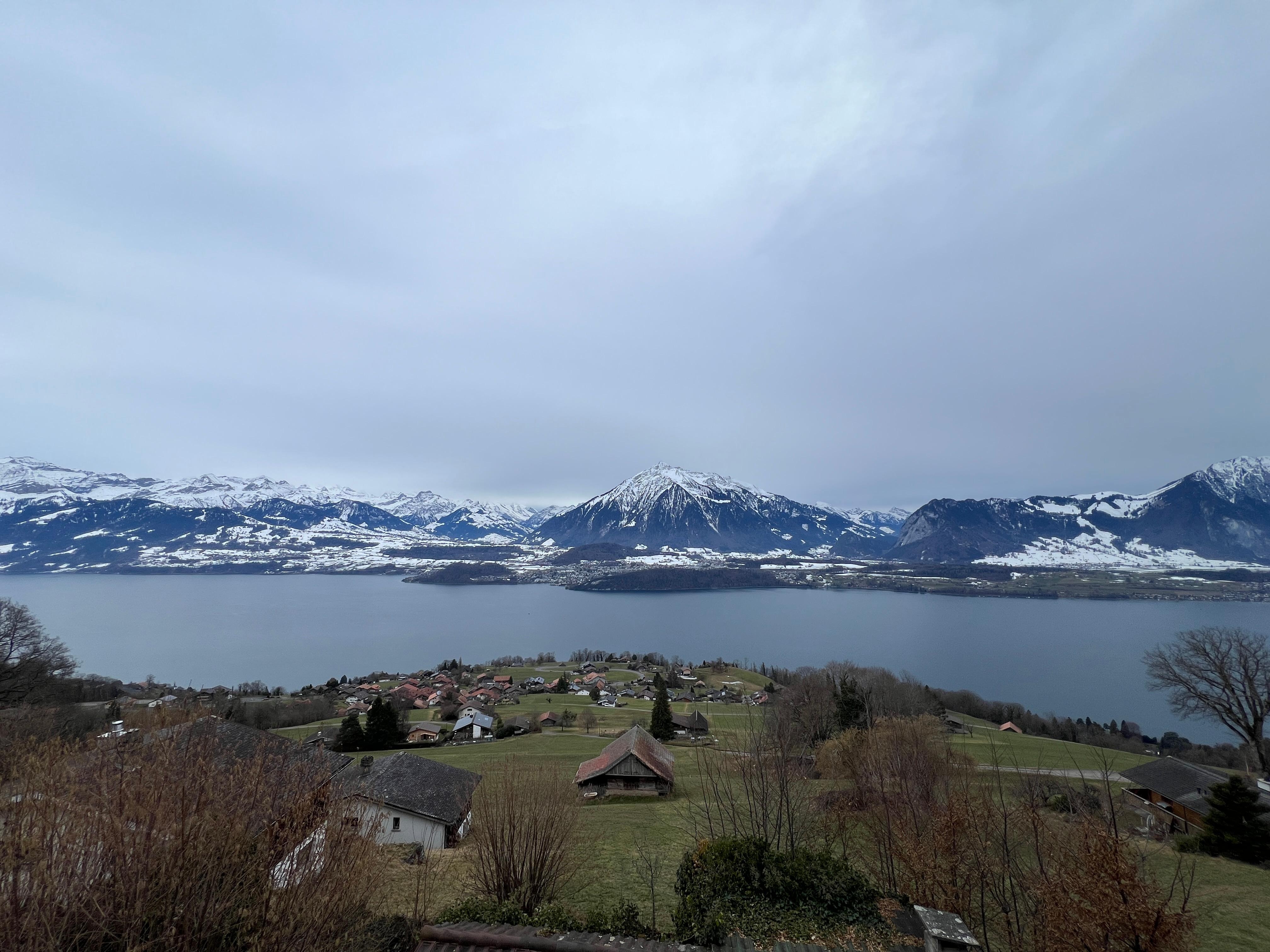 Chalet Apartments 2 1/2 rooms at an altitude of 800 meters in a very quiet location with a panoramic view of the mountains of the Bernese Oberland In Sigriswil you will discover the perfect combination of mountains and lake. Immerse yourself in the unspoilt nature of the nearby Justistal and the hiking and recreational area around Schwanden, Tschingel, Aeschlen and Ringoldswil. The location of Gunten on the shores of Lake Thun and Lake Sigriswil, slightly elevated above the lake, offers a phenomenal panoramic view of the Bernese Alps,