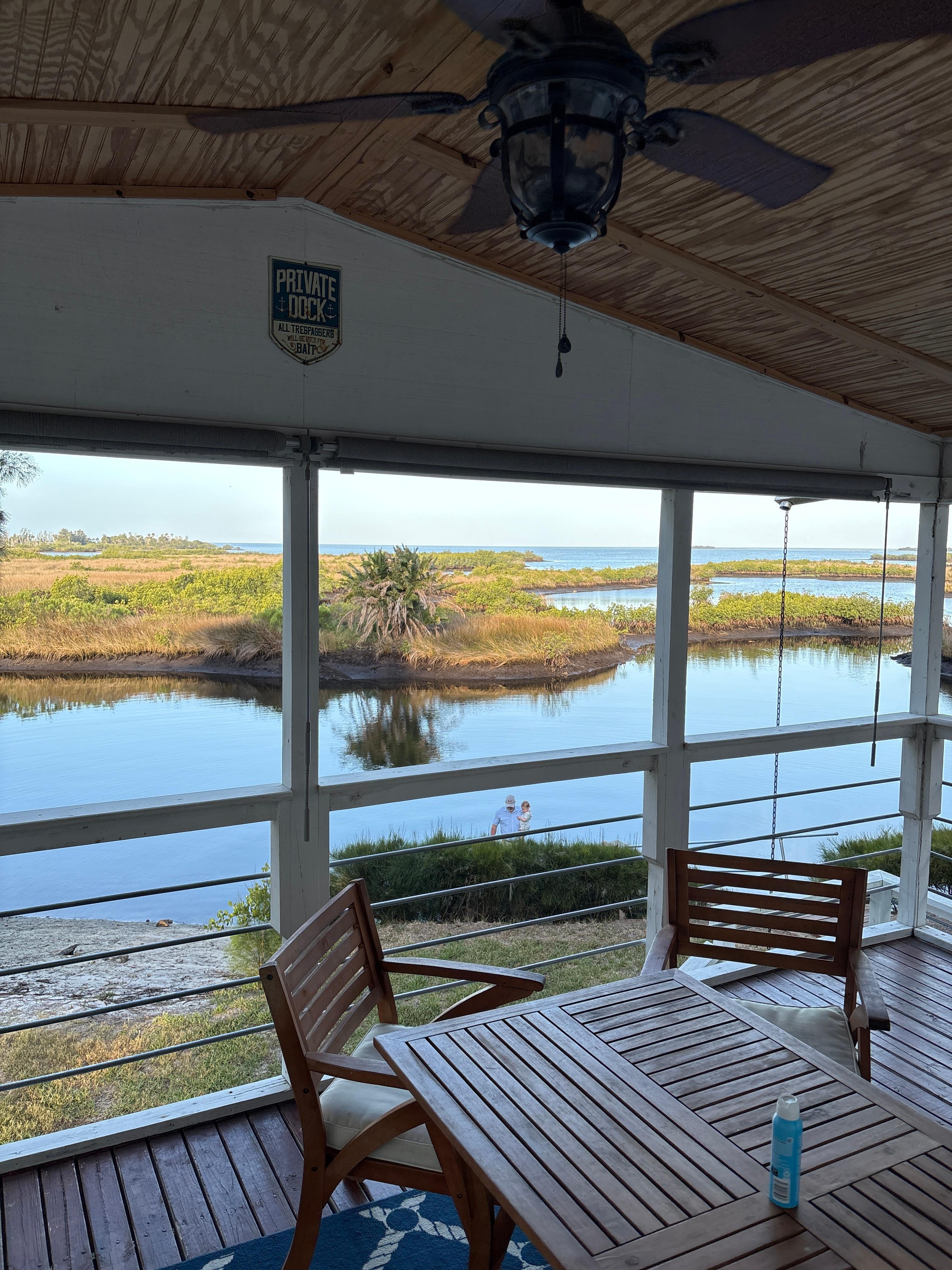 Fantastic place. If you want a quiet place in nature to relax after a day at Weeki Wachi, this is the place. Had a nice breeze off the gulf overlooking beautiful and relaxing scenery. One of the days we never left, kayaked and swam in the water and had a nice bonfire that night. We will be back