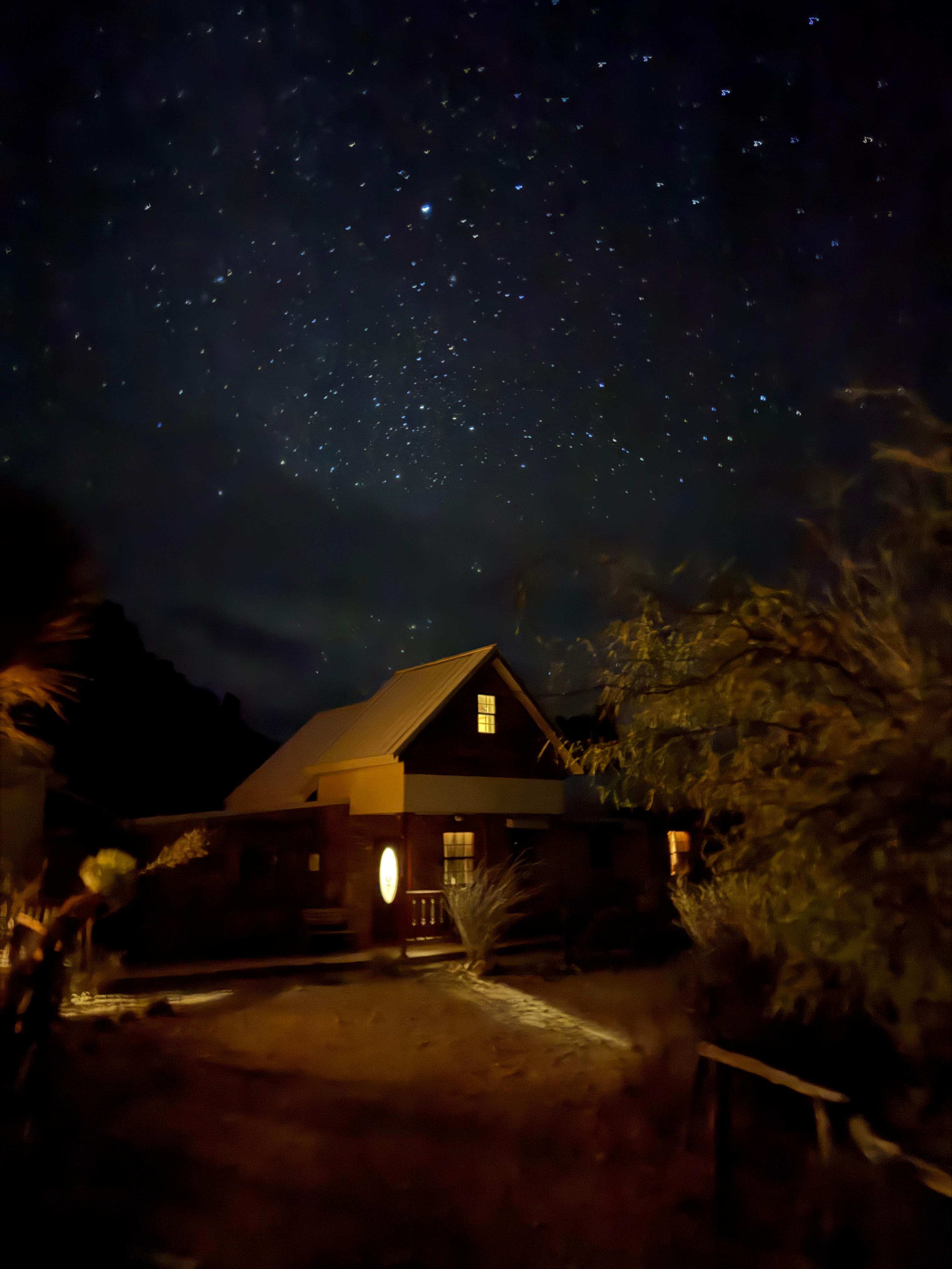 The amazing solitude is extremely quiet and peaceful day or night. If you come to Ten Bits Ranch when the moon cycle is dark, after 20 minutes (for your eyes to adjust), the stars will appear to surround you like a blanket. Be sure to watch for shooting stars. There is a shooting star in view at Ten Bits Ranch almost every week. Ten Bits Ranch offers a truly private, unique, off grid, dark sky star gazing experience that few people have the opportunity to see in person. The craggy Chimney Rock Mountain blocks out a beautiful black jagged silhouette in the blanket of stars.