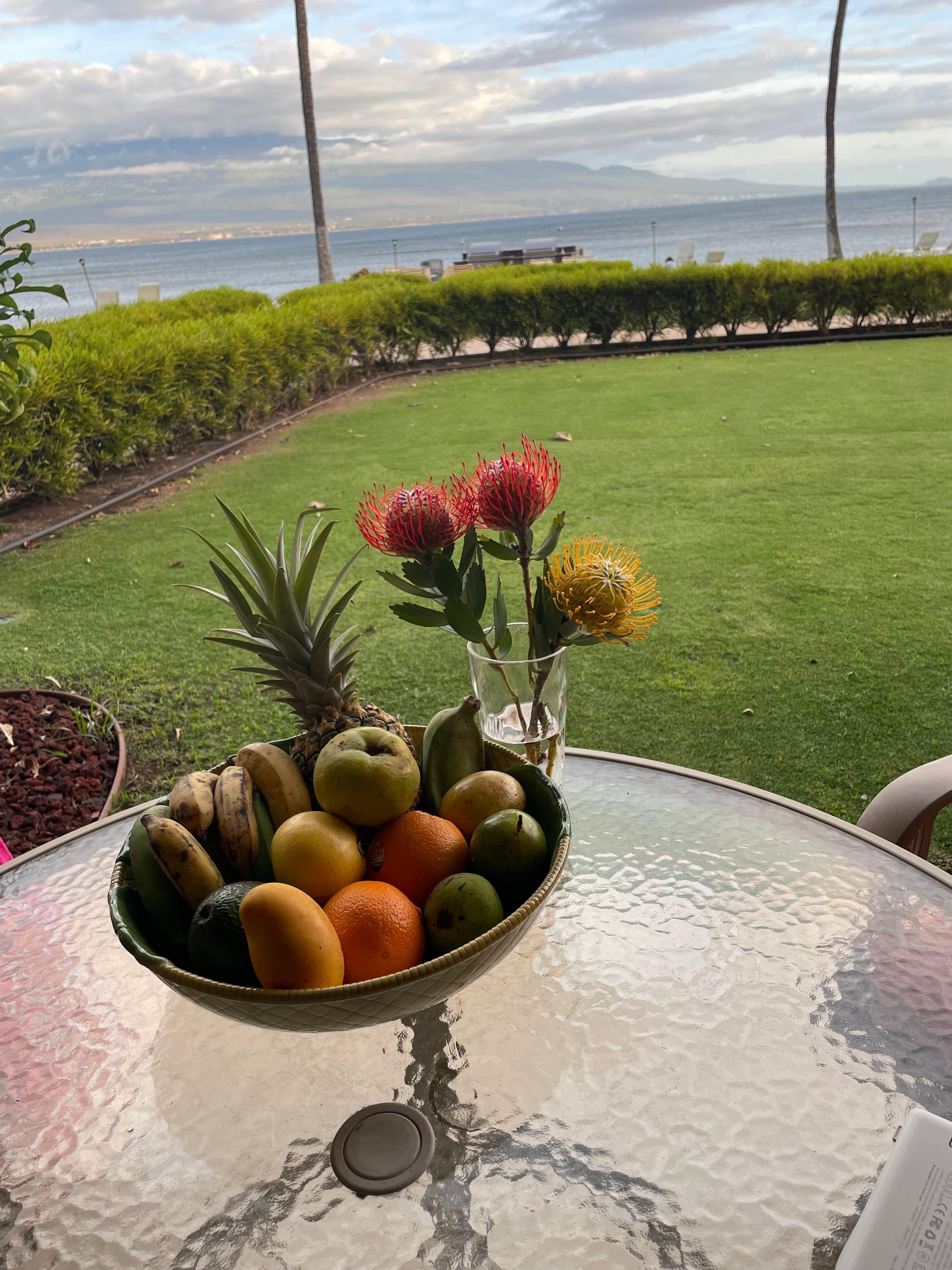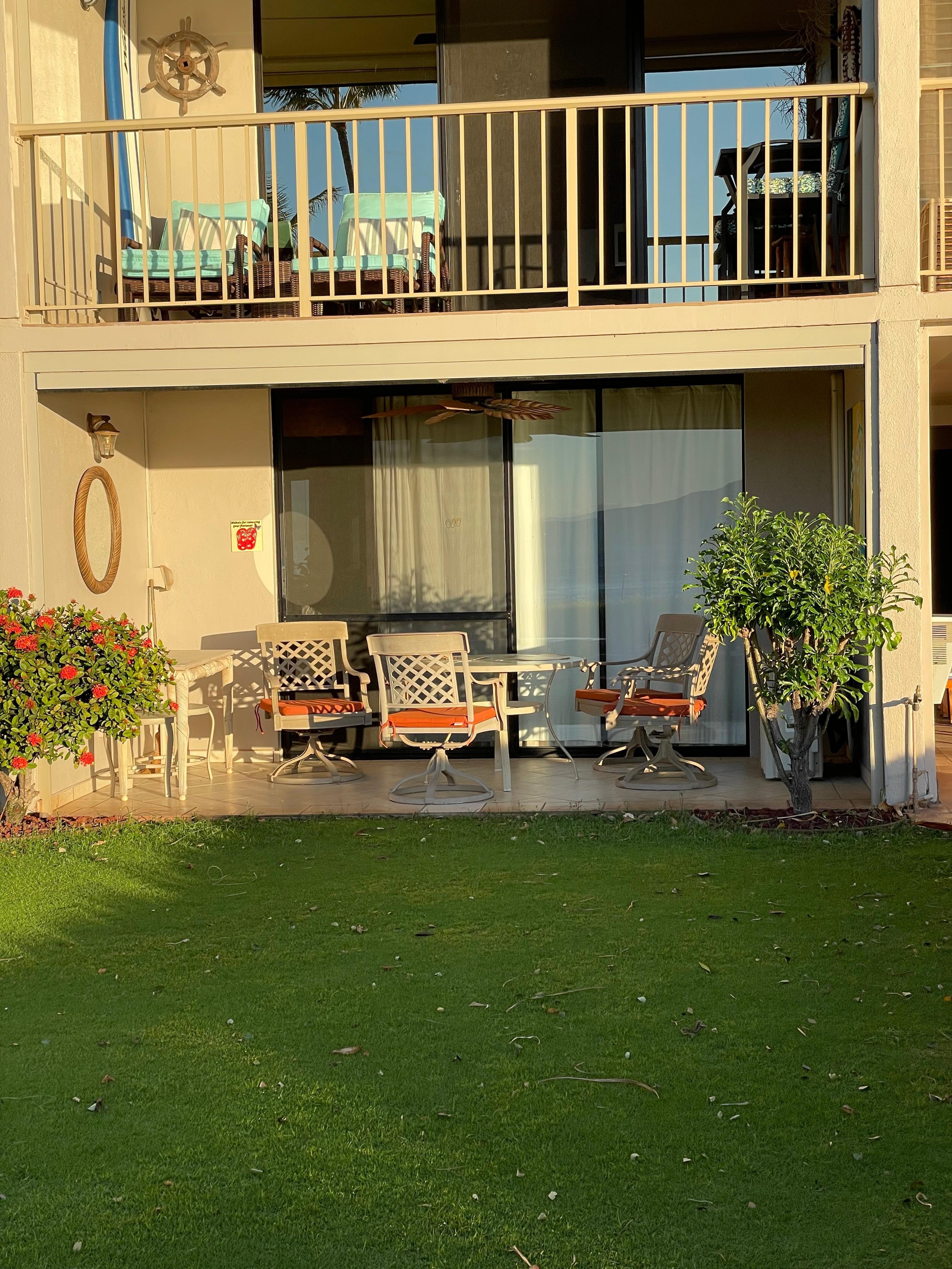 My condo at the Ma’alaea Kai is an oceanfront walkout. Newly renovated, it embraces the ambiance of the islands with the luxury and comfort of a perfect vacation getaway. Both pool and grilling area are only steps from the lanai against the backdrop of the ocean views and the sounds of the waves and the breezes in the palm trees.